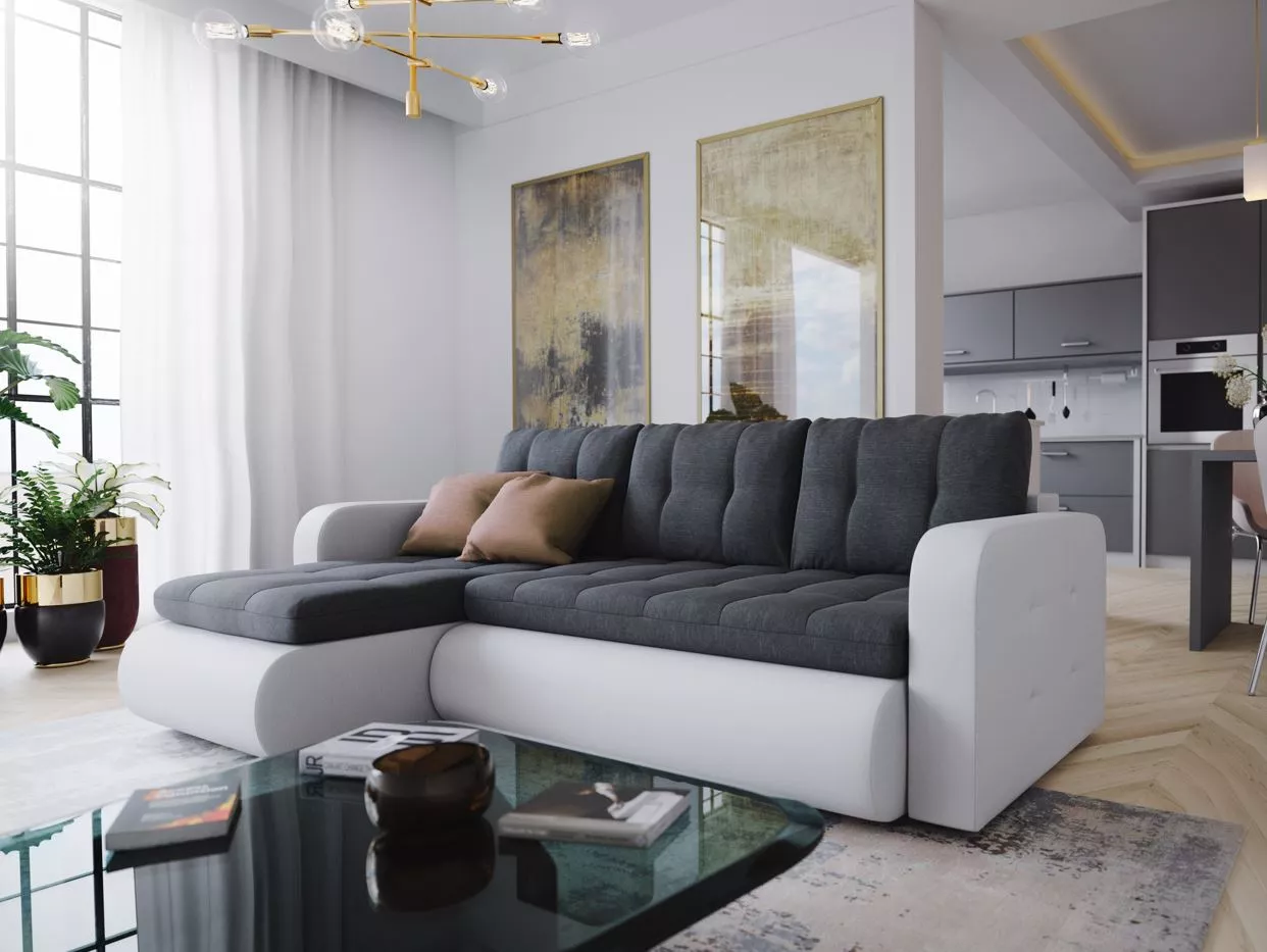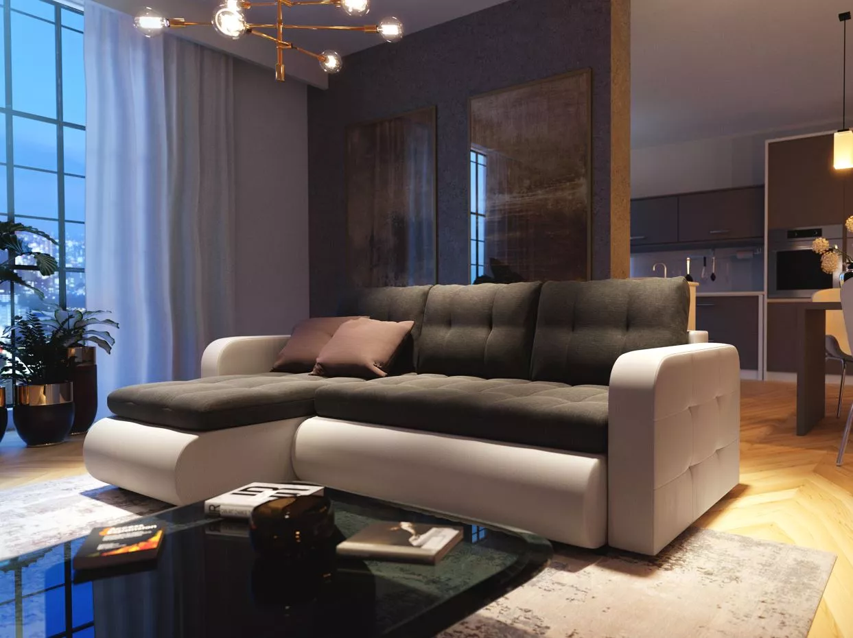 Rozkládací sedačka SANILA spojuje elegantní design, pohodlí a praktičnost a snadno se tak stane dominantou každého obývacího pokoje. Měkké čalounění v kombinaci s ekokůží nabízí maximální komfort pro každodenní odpočinek. Díky rozkládací funkci navíc sedačku během chvilky proměníte v prostorné lůžko o rozměrech 120×202 cm. Praktický úložný prostor pak oceníte pro uschování dek, polštářů i dalších věcí, které chcete mít po ruce, ale ne na očích.