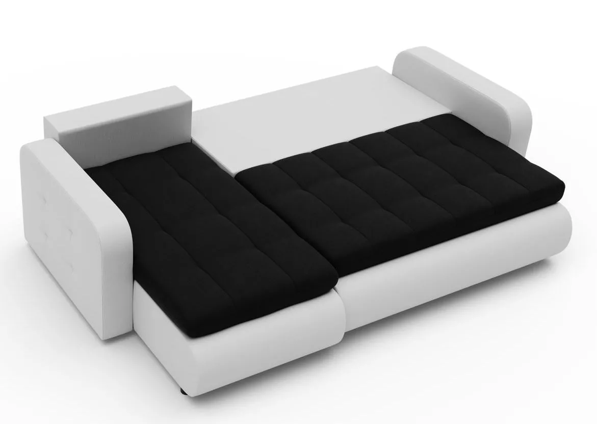 Rozkládací sedačka s úložným prostorem SANILA - bílá ekokůže / antracitová