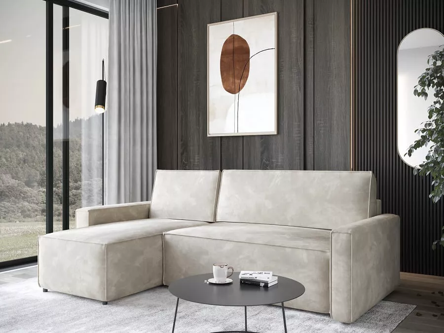 Rohová rozkládací sedačka FADELA - světlá béžová, levý roh