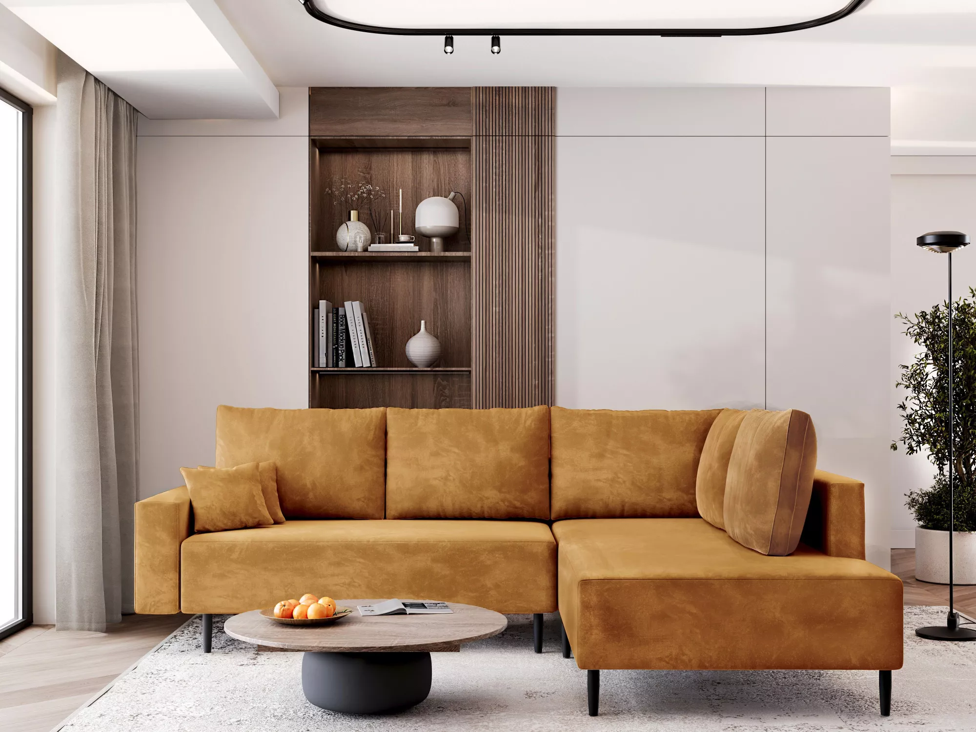 Sedací souprava s úložným prostorem ZAHIRA - zlatá, pravý roh