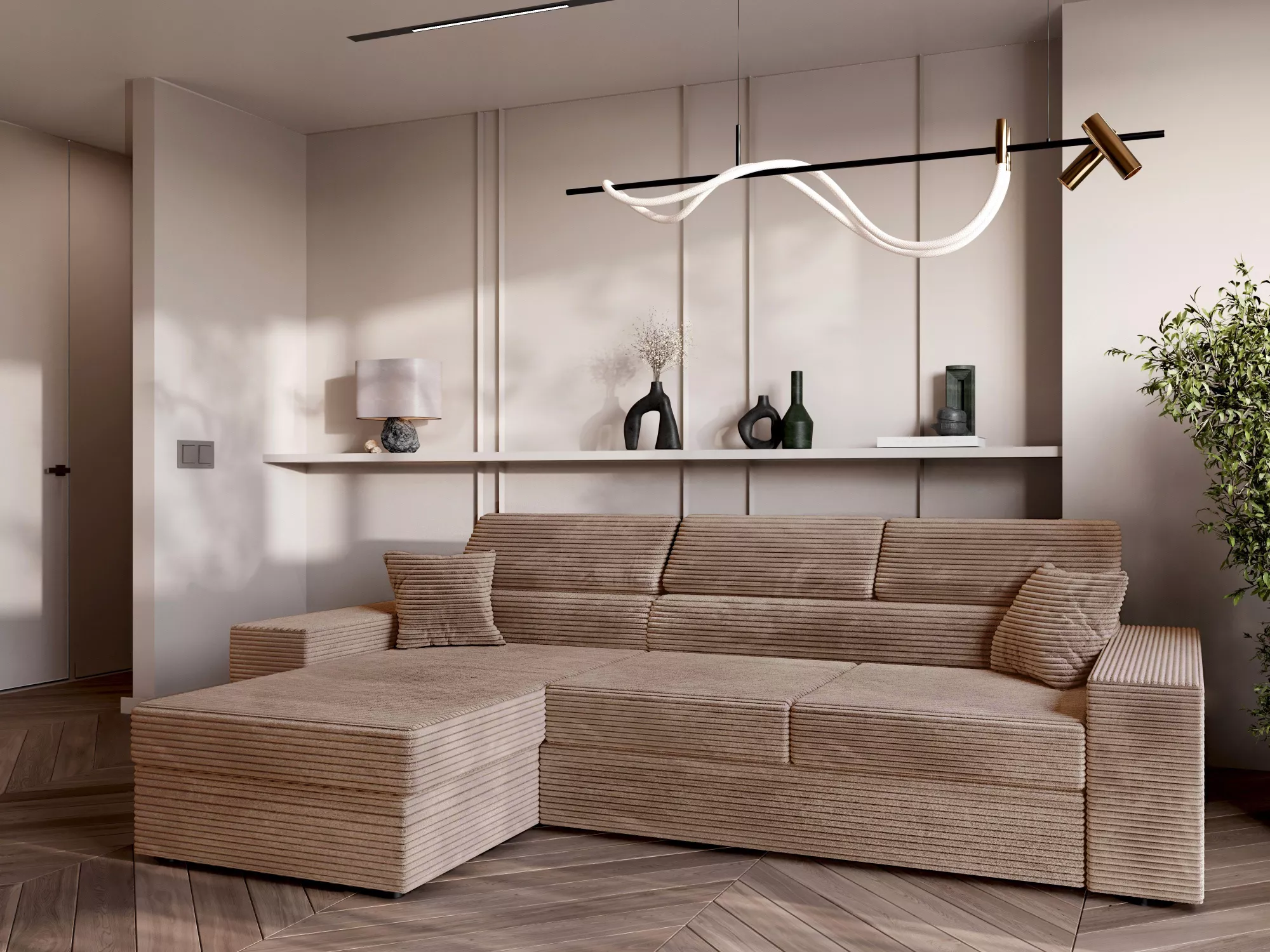 Rohová sedací souprava AMIRA s příjemným čalouněním poskytuje maximální pohodlí při odpočinku. Výhodou je zabudovaný úložný prostor a možnost rozložení sedačky na lůžko o spací ploše 128x224. Praktický úložný prostor zajistí dostatek místa pro lůžkoviny a další nezbytnosti.
