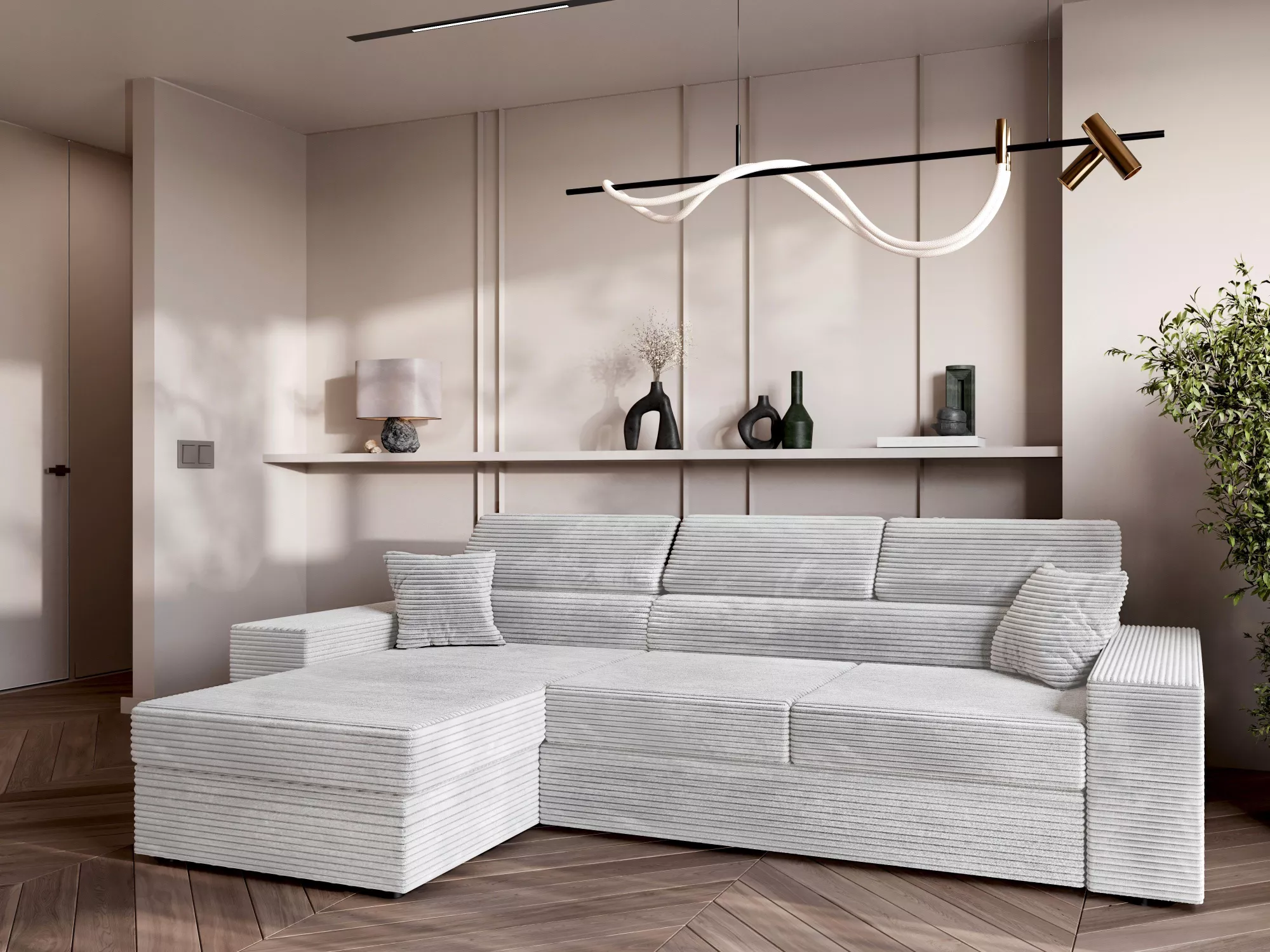 Rohová sedací souprava AMIRA s příjemným čalouněním poskytuje maximální pohodlí při odpočinku. Výhodou je zabudovaný úložný prostor a možnost rozložení sedačky na lůžko o spací ploše 128x224. Praktický úložný prostor zajistí dostatek místa pro lůžkoviny a další nezbytnosti.