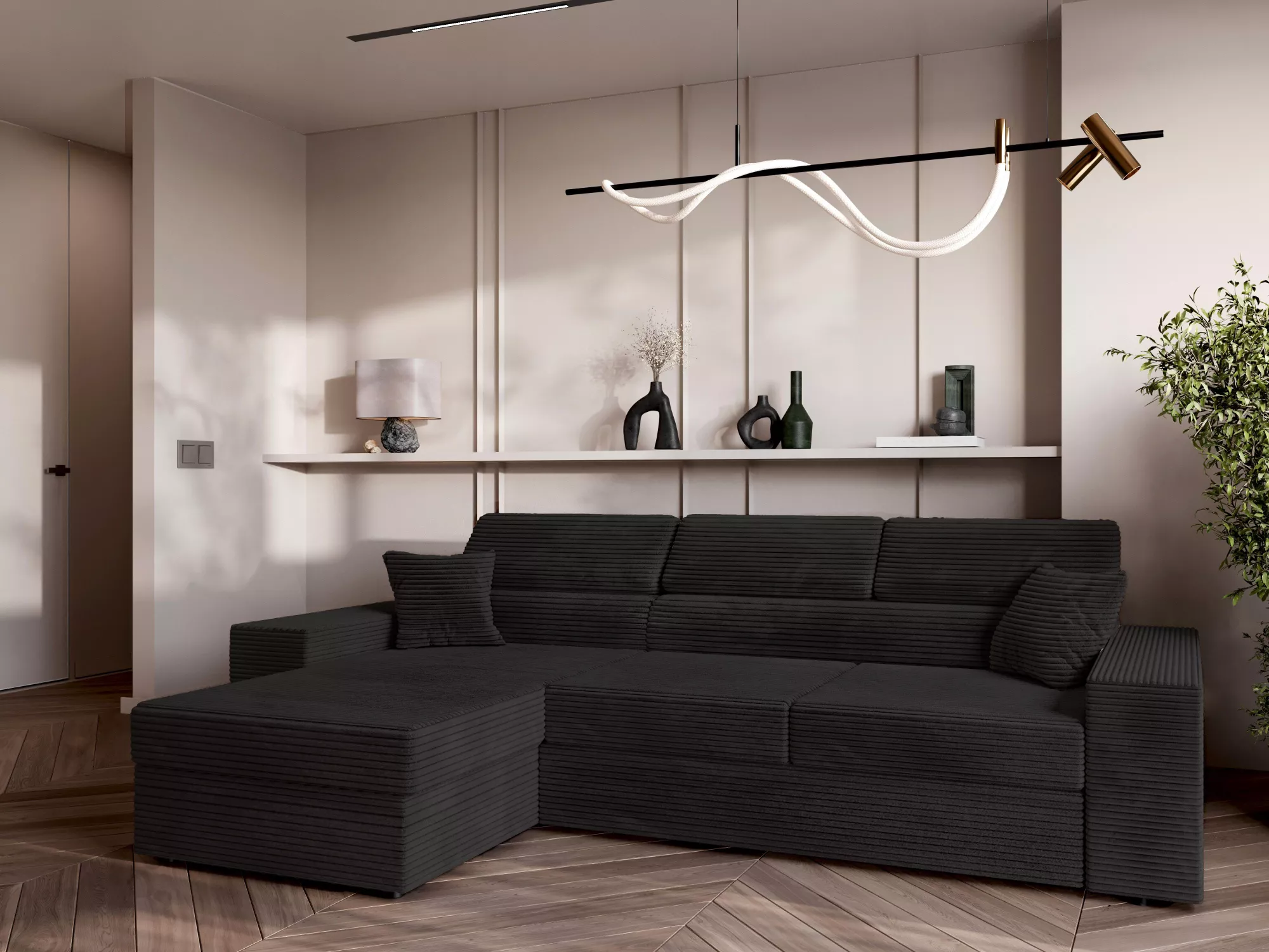 Rohová sedací souprava AMIRA s příjemným čalouněním poskytuje maximální pohodlí při odpočinku. Výhodou je zabudovaný úložný prostor a možnost rozložení sedačky na lůžko o spací ploše 128x224. Praktický úložný prostor zajistí dostatek místa pro lůžkoviny a další nezbytnosti.
