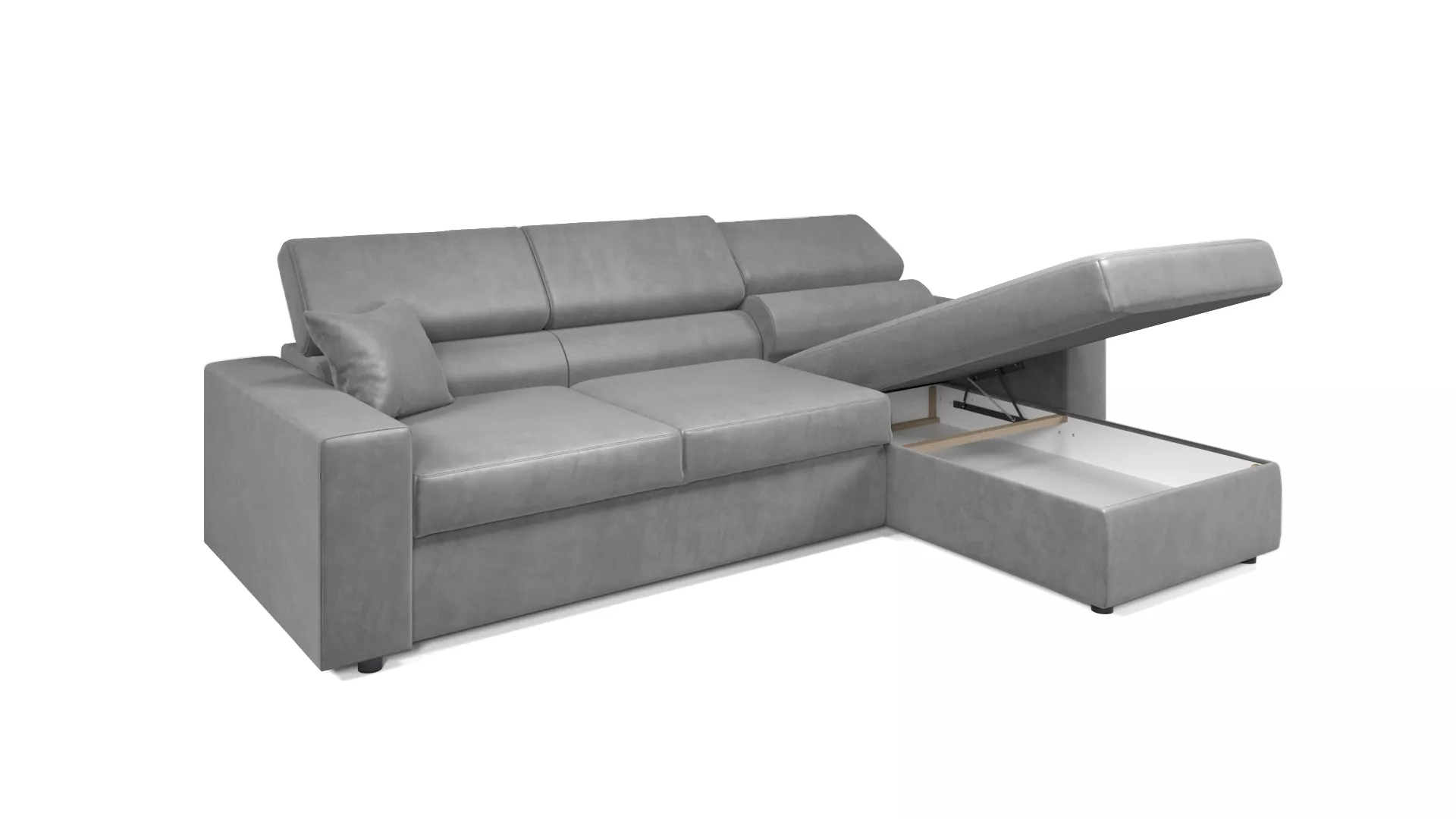 Rohová sedací souprava AMIRA s příjemným čalouněním poskytuje maximální pohodlí při odpočinku. Výhodou je zabudovaný úložný prostor a možnost rozložení sedačky na lůžko o spací ploše 128x224. Praktický úložný prostor zajistí dostatek místa pro lůžkoviny a další nezbytnosti.
