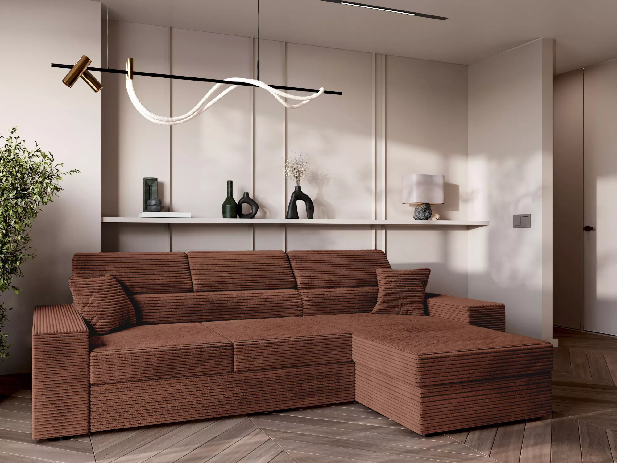 Rohová sedací souprava AMIRA - růžovohnědá, pravý roh