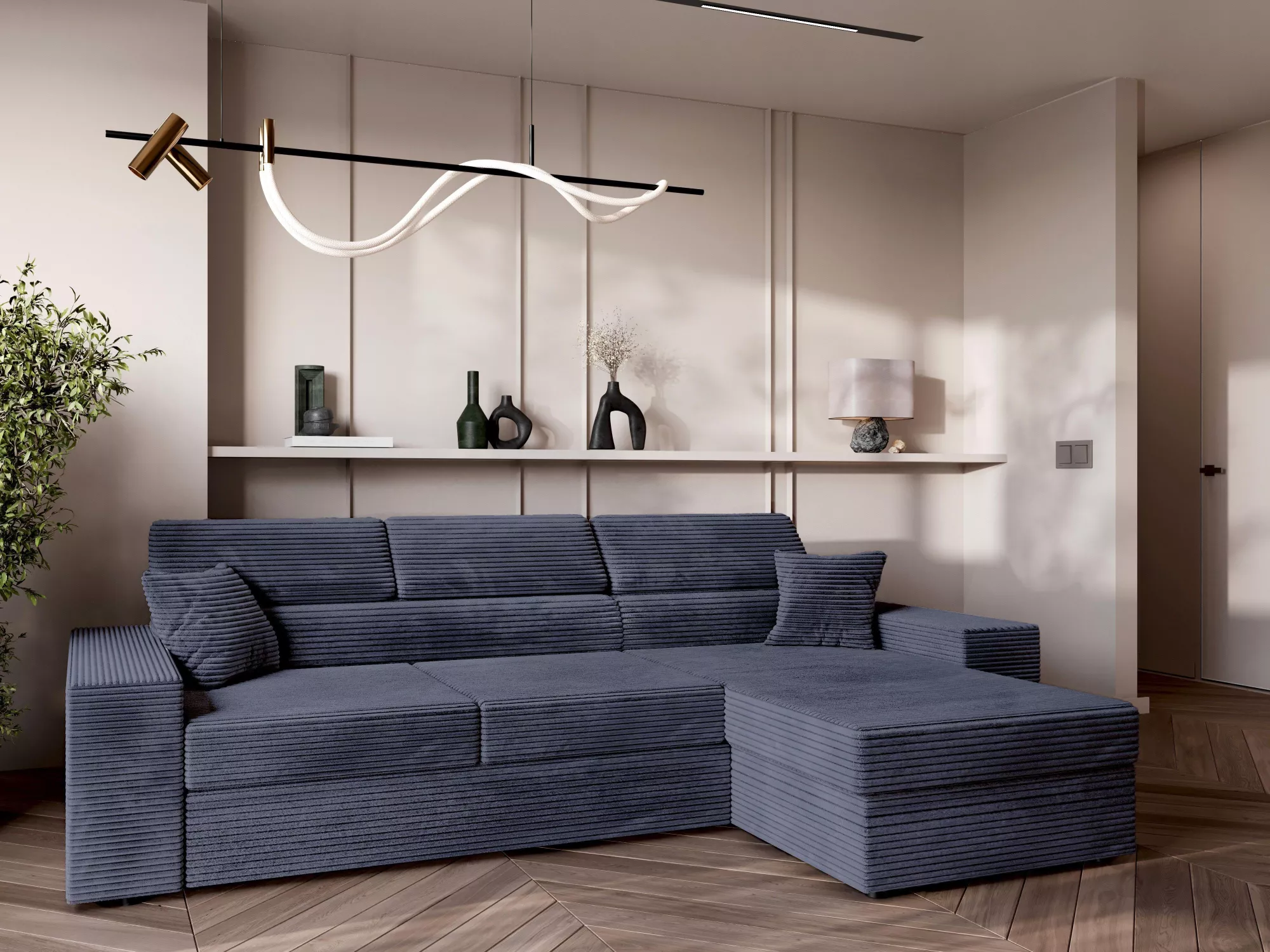 Rohová sedací souprava AMIRA - tmavě modrá, pravý roh