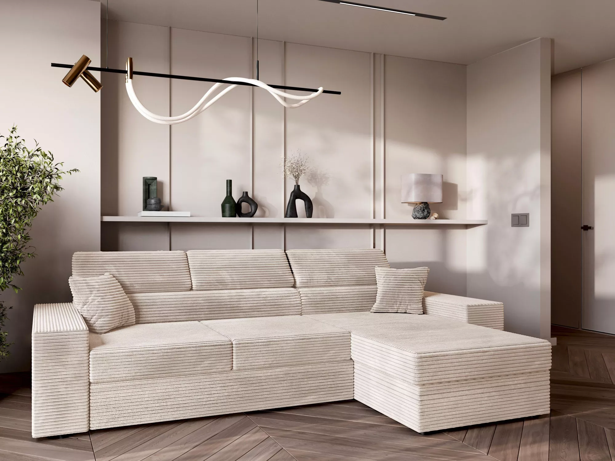 Rohová sedací souprava AMIRA s příjemným čalouněním poskytuje maximální pohodlí při odpočinku. Výhodou je zabudovaný úložný prostor a možnost rozložení sedačky na lůžko o spací ploše 128x224. Praktický úložný prostor zajistí dostatek místa pro lůžkoviny a další nezbytnosti.