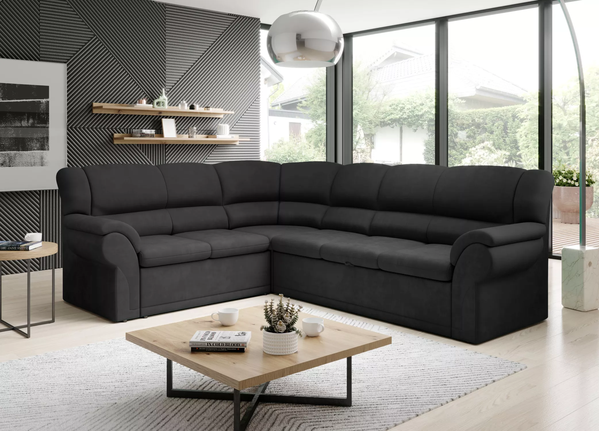 Rozkládací sedací souprava LAJANA spojuje elegantní design, pohodlí a praktičnost a snadno se tak stane dominantou každého obývacího pokoje. Měkké čalounění nabízí maximální komfort pro každodenní odpočinek. Díky rozkládací funkci sedačku snadno proměníte v prostorné lůžko o rozměrech 120x205 cm.