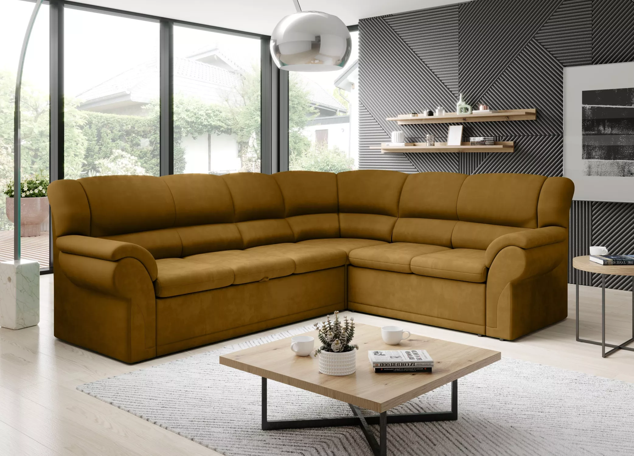Rozkládací sedací souprava LAJANA - hořčicová, pravý roh
