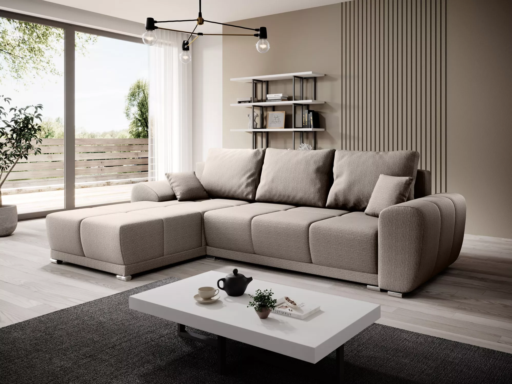 Sedací souprava s úložným prostorem TALULLA - béžová, levý roh