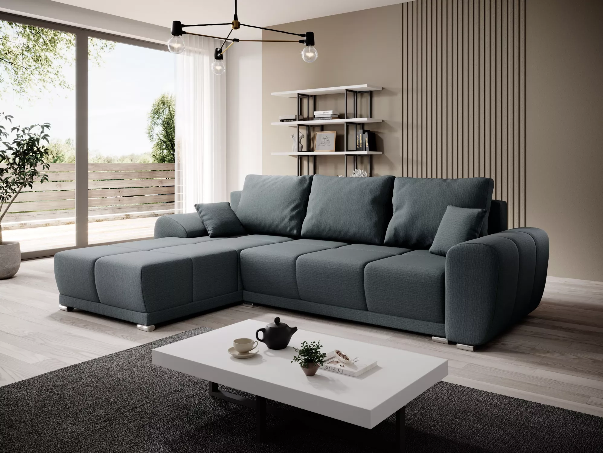 Sedací souprava s úložným prostorem TALULLA - modrošedá, levý roh