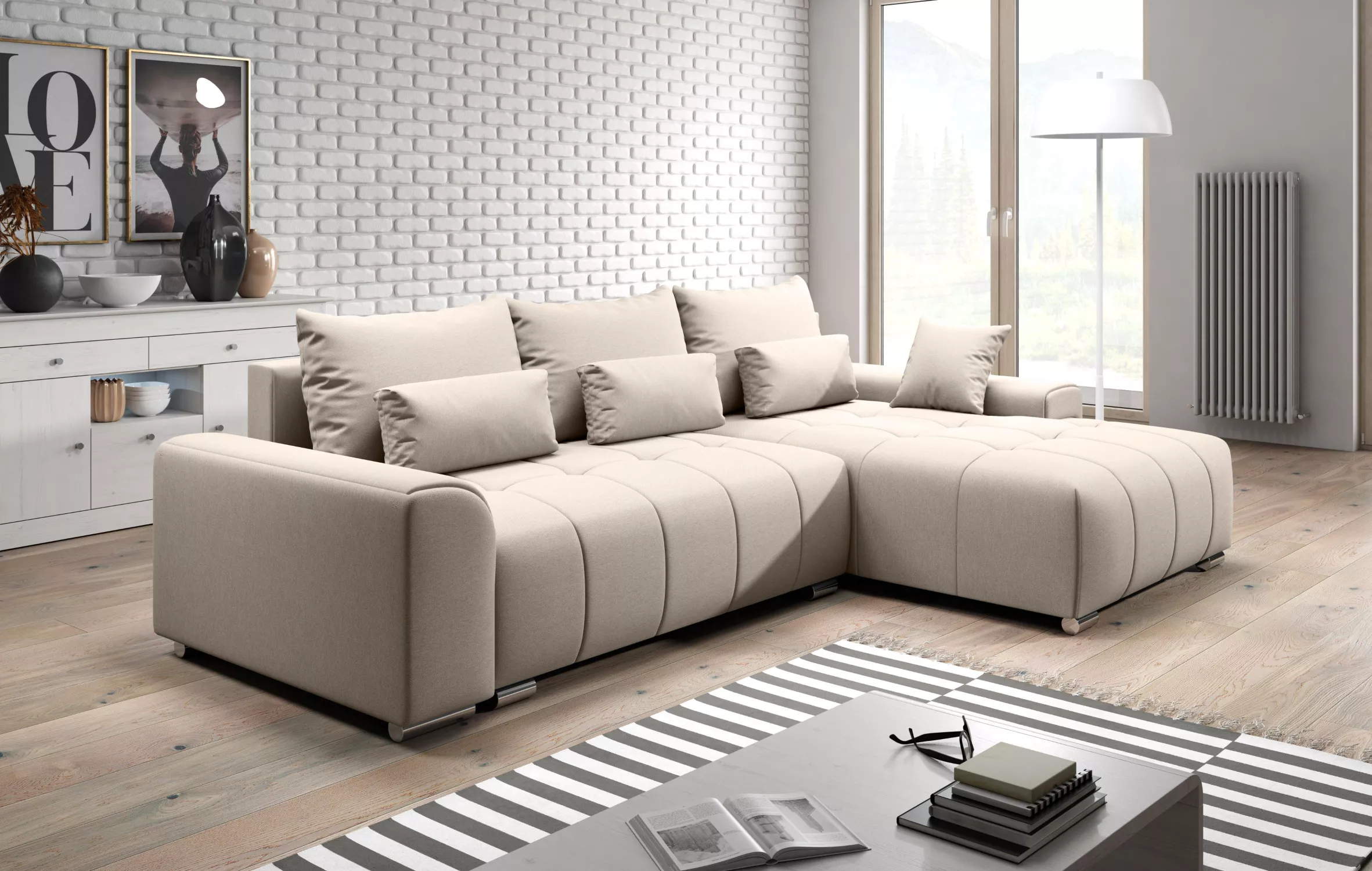 Rohová rozkládací sedačka RANDA zaujme především svým prošívaným sedákem a množstvím polštářů. Rozkládací funkce a úložný prostor zpříjemní každodenní používání. Díky masivní konstrukci vám sedačka bude sloužit mnoho let.