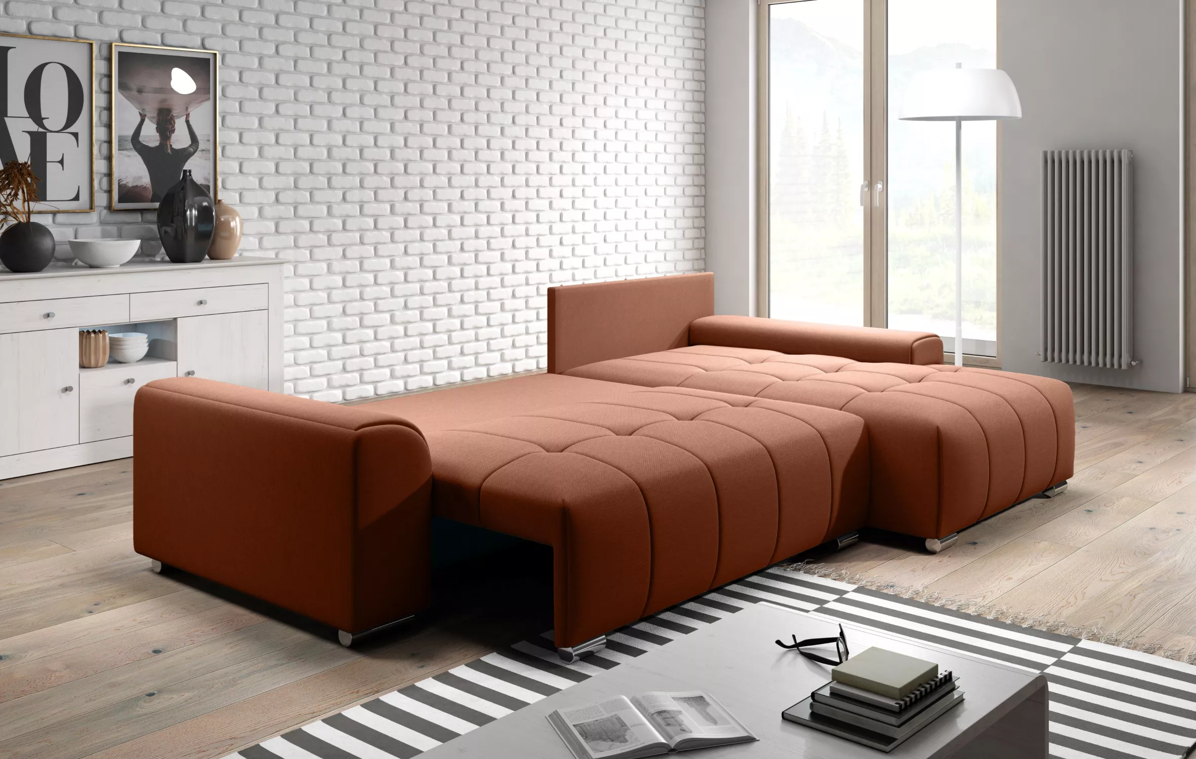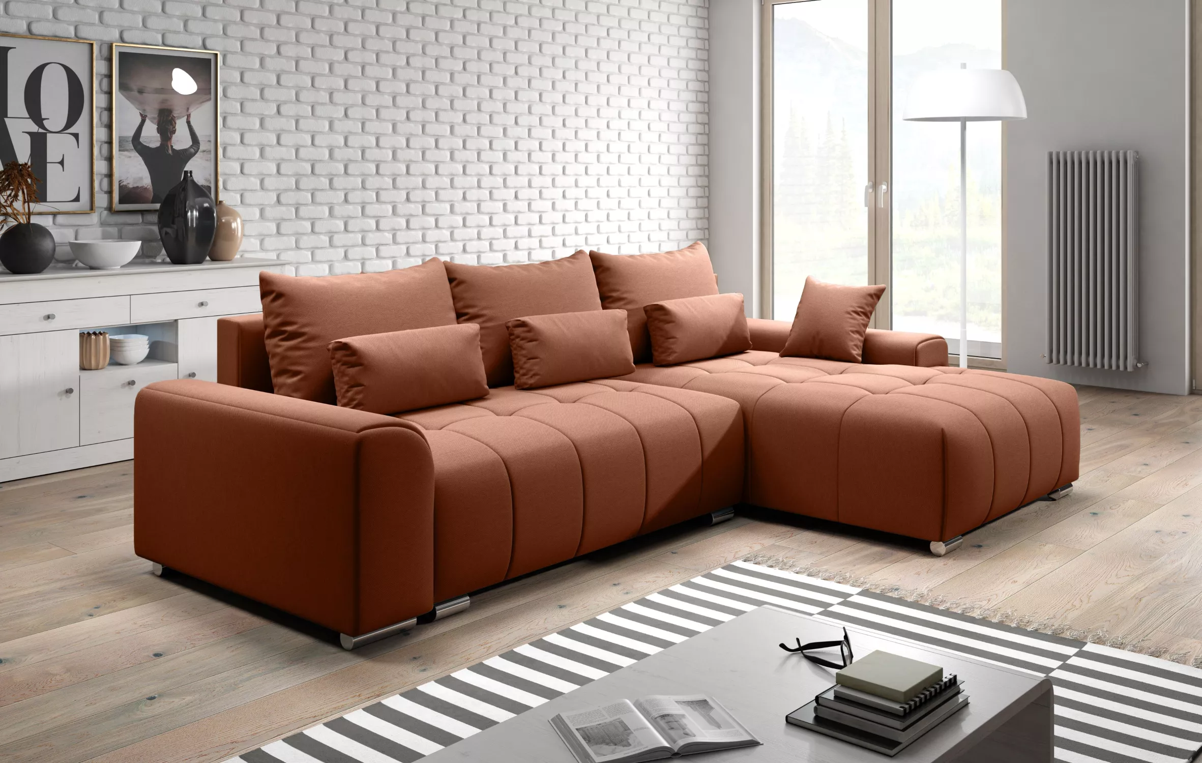 Rohová rozkládací sedačka RANDA zaujme především svým prošívaným sedákem a množstvím polštářů. Rozkládací funkce a úložný prostor zpříjemní každodenní používání. Díky masivní konstrukci vám sedačka bude sloužit mnoho let.