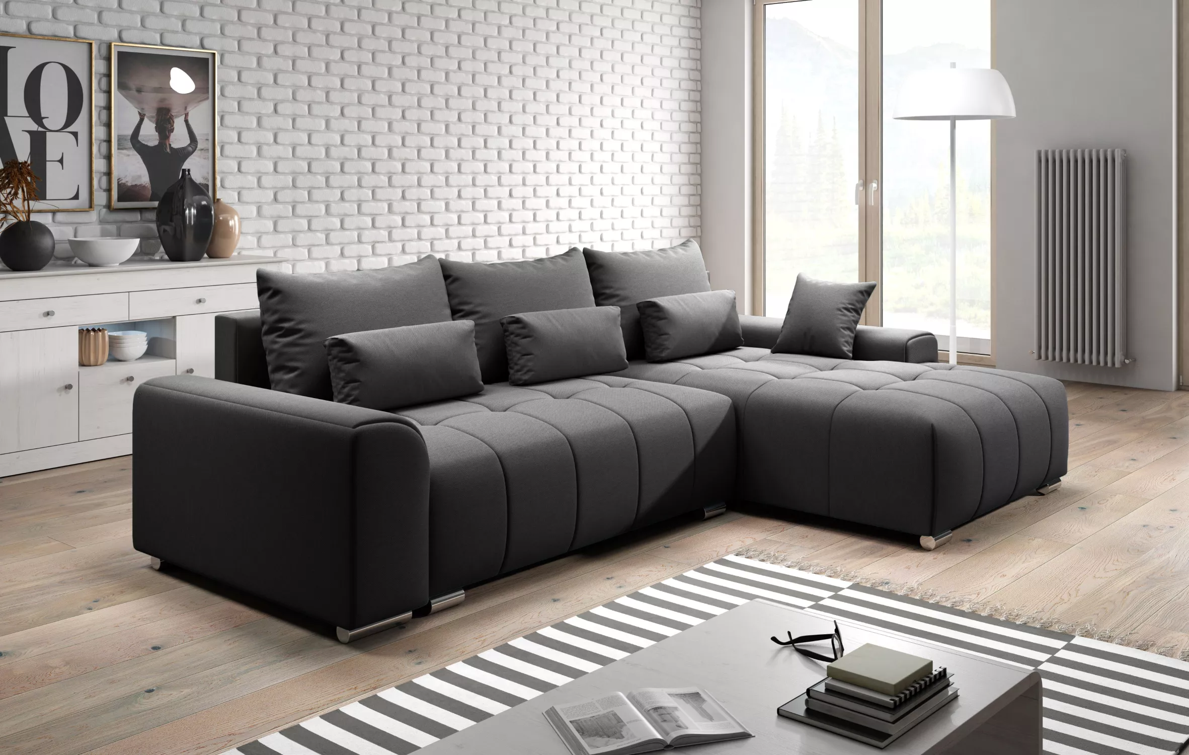 Rohová rozkládací sedačka RANDA zaujme především svým prošívaným sedákem a množstvím polštářů. Rozkládací funkce a úložný prostor zpříjemní každodenní používání. Díky masivní konstrukci vám sedačka bude sloužit mnoho let.