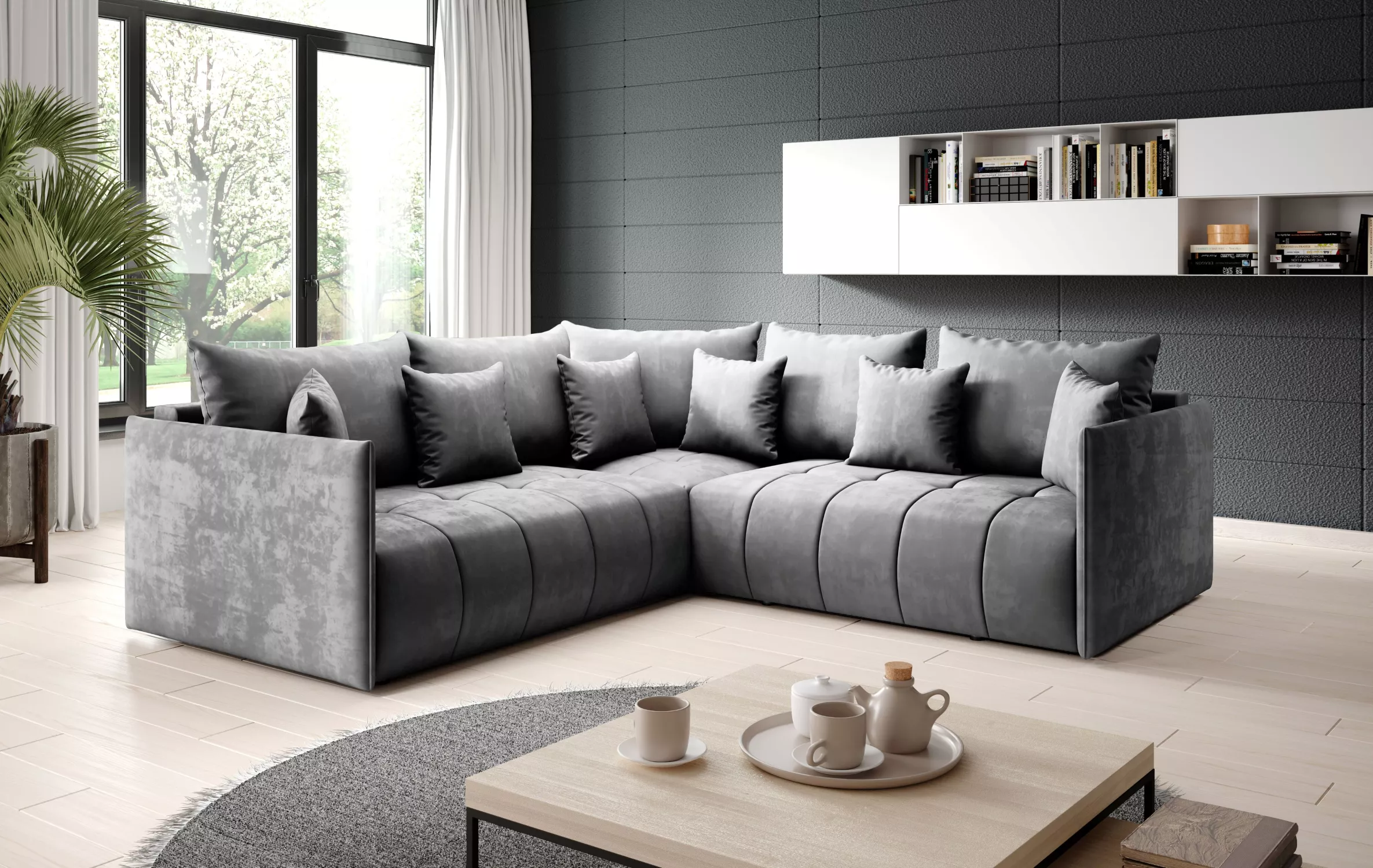 Rohová sedací souprava VALENTINI svým designem zapadne do všech moderních obývacích pokojů. Opěradlo ve formě volně ložených polštářů vám zpříjemní každodenní používání. Zadní část sedačky je čalouněná látkou, což umožňuje její umístění kdekoliv v místnosti.