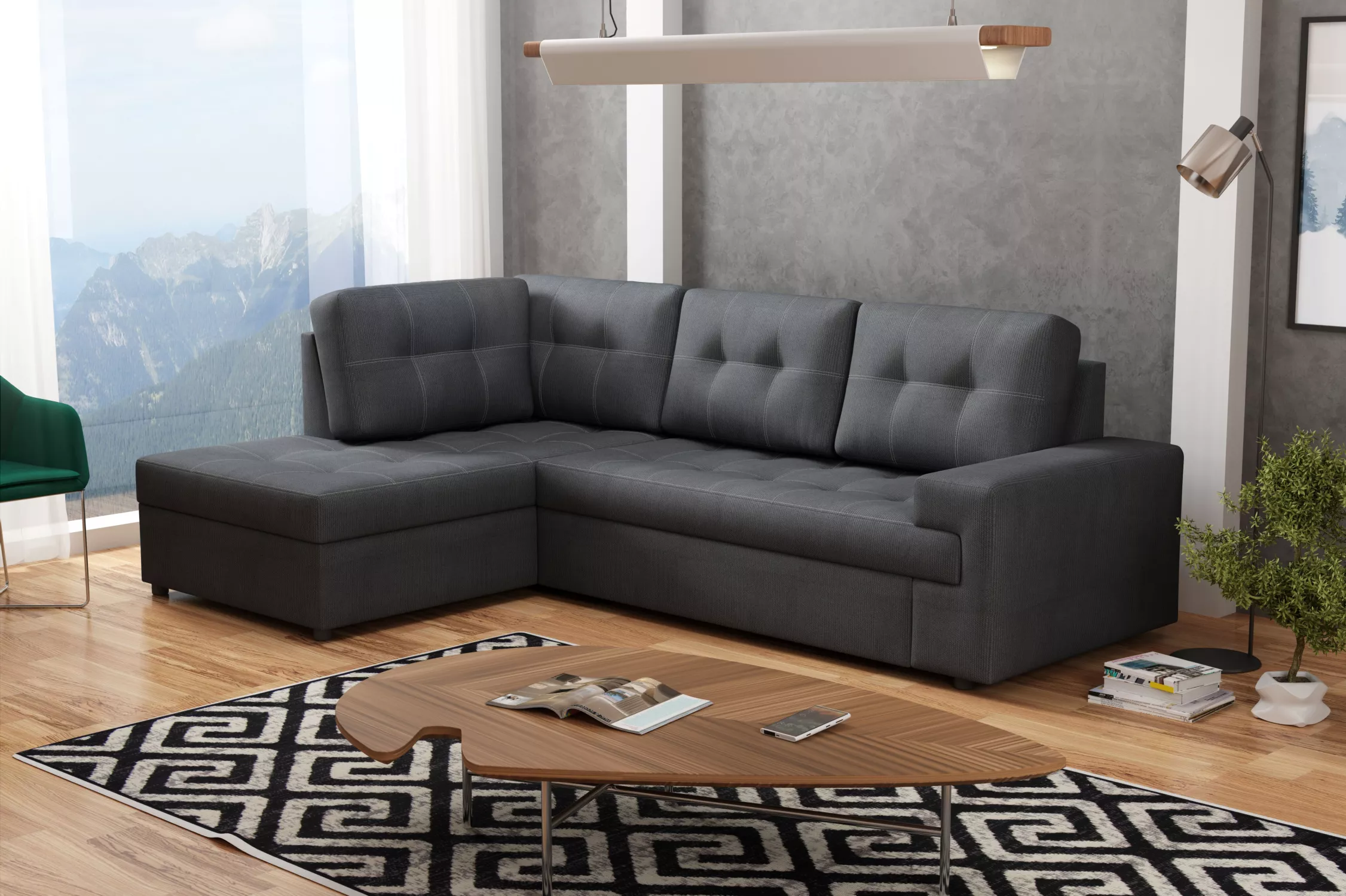 Rohová sedací souprava CAMILLE - tmavě šedá, levý roh