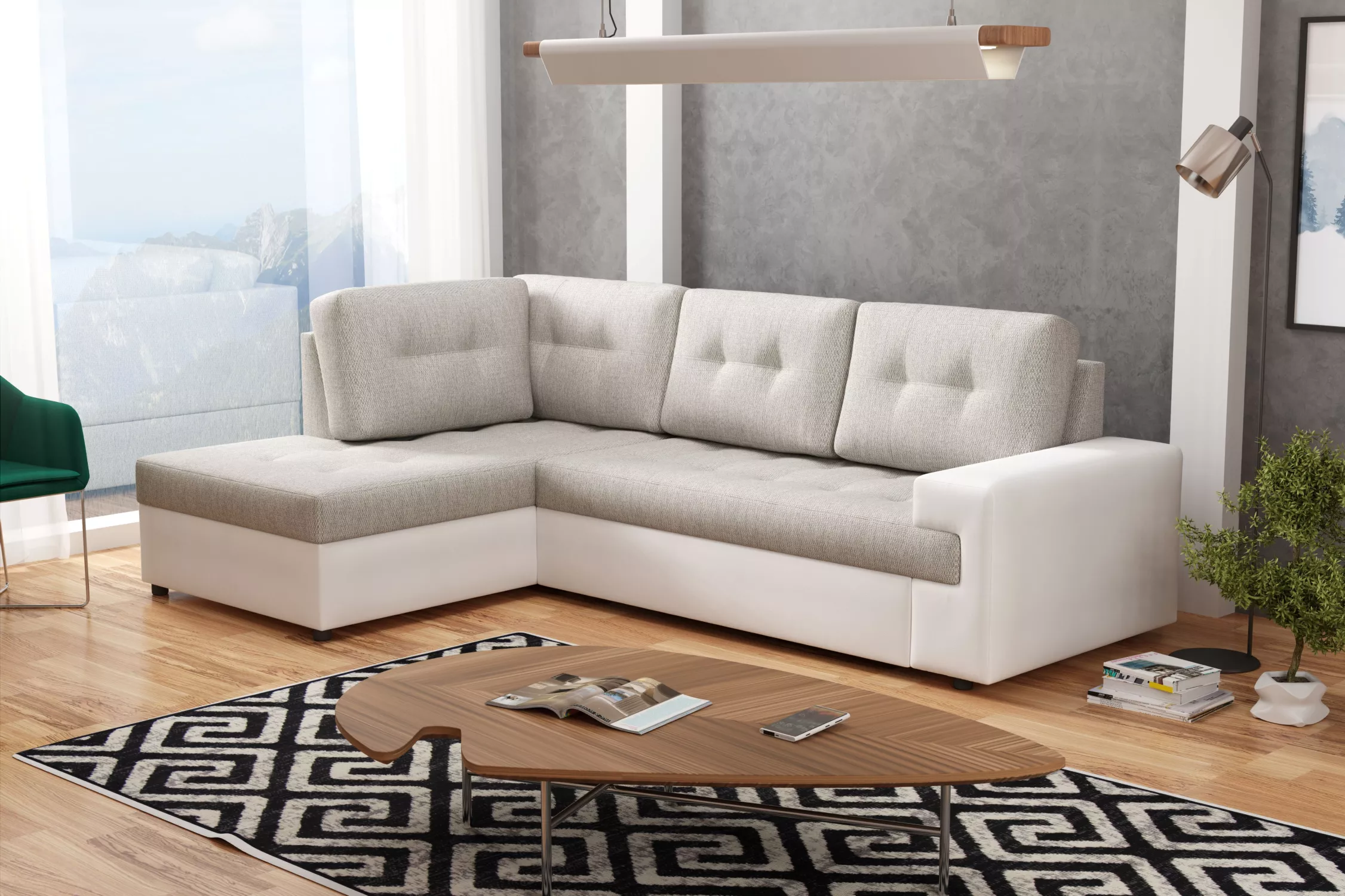 Rohová sedací souprava CAMILLE - bílá eko kůže / béžová, levý roh