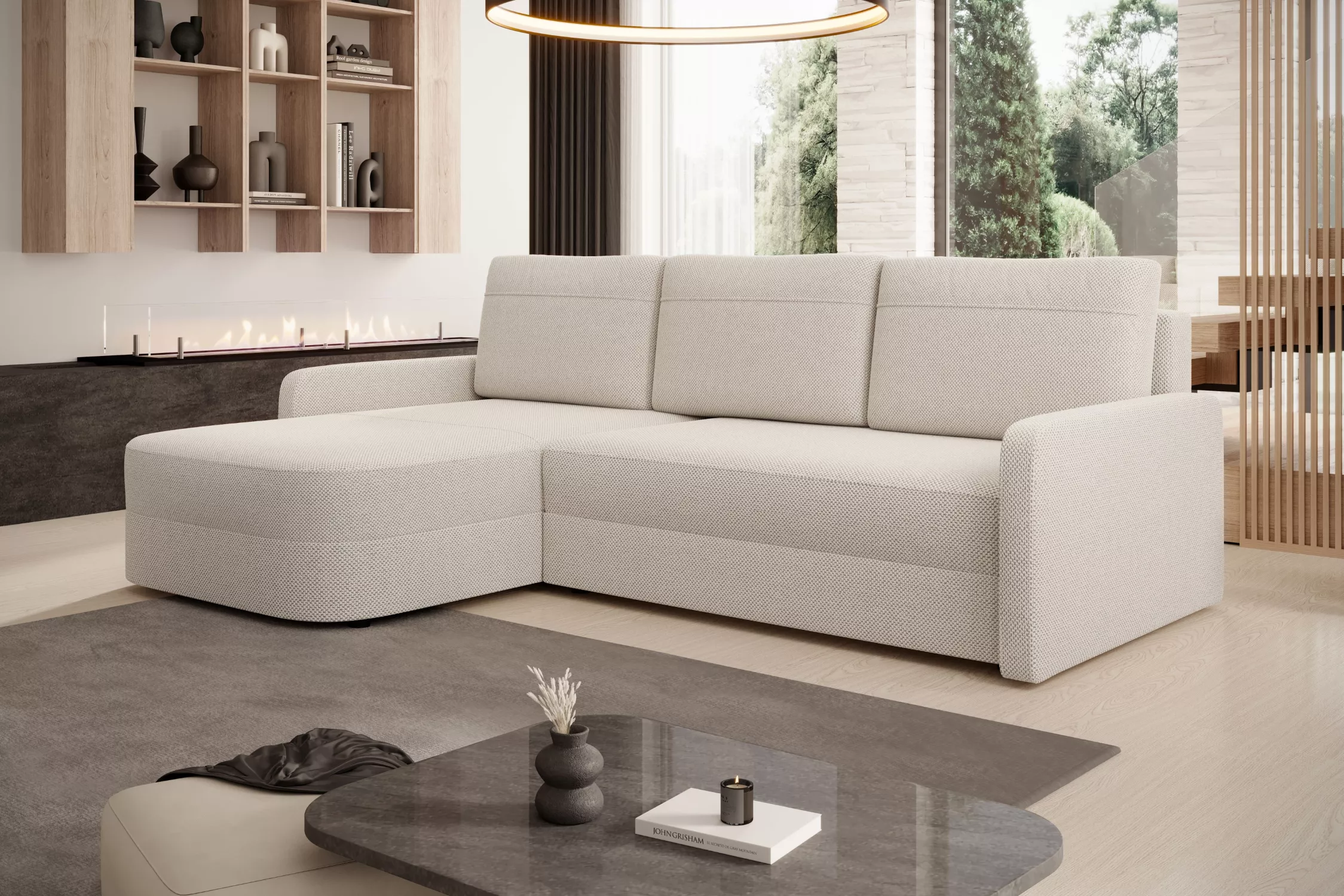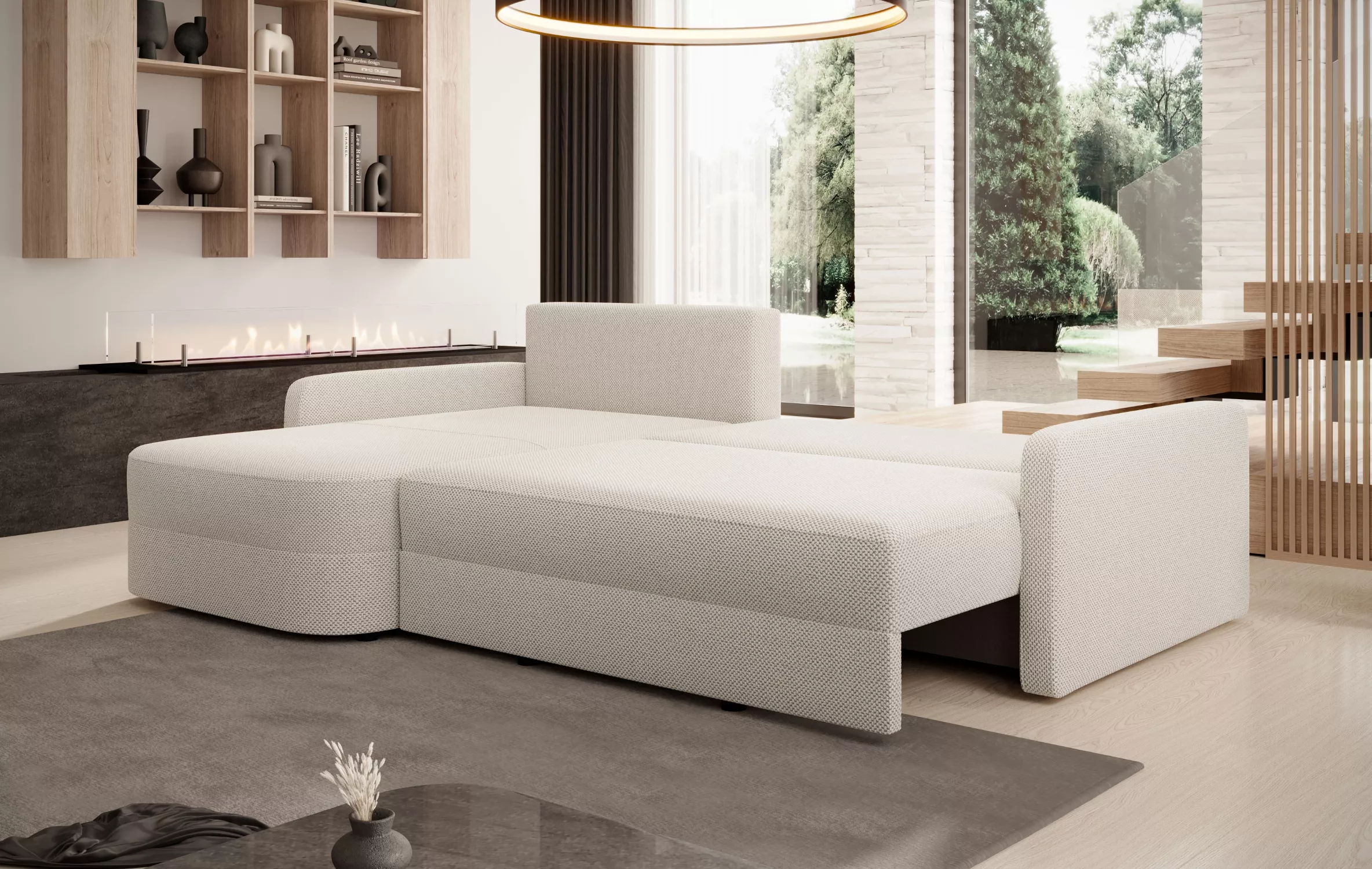 Rozkládací sedací souprava NADRAH vyniká svým osobitým charakterem a vysokou funkčností. Sedačku snadno proměníte na spací lůžko a rozměrech 135x233 cm. Další výhodou je prostorný úložný prostor, který zpříjemní její používání.