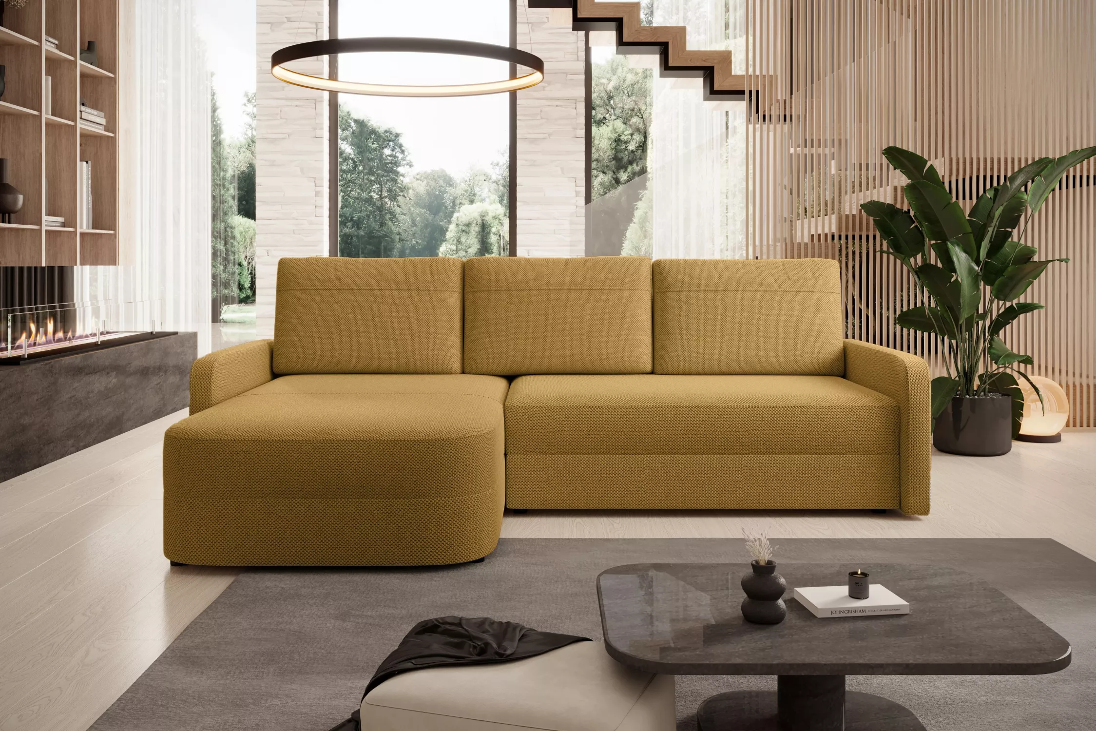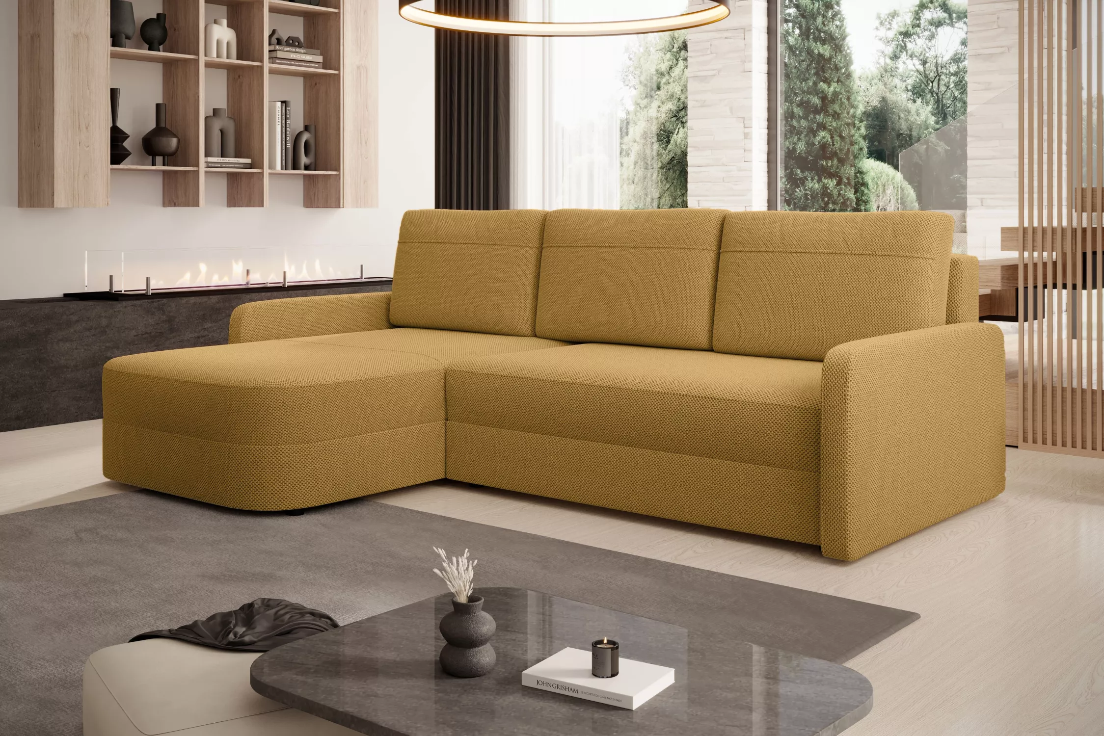 Rozkládací sedací souprava NADRAH vyniká svým osobitým charakterem a vysokou funkčností. Sedačku snadno proměníte na spací lůžko a rozměrech 135x233 cm. Další výhodou je prostorný úložný prostor, který zpříjemní její používání.