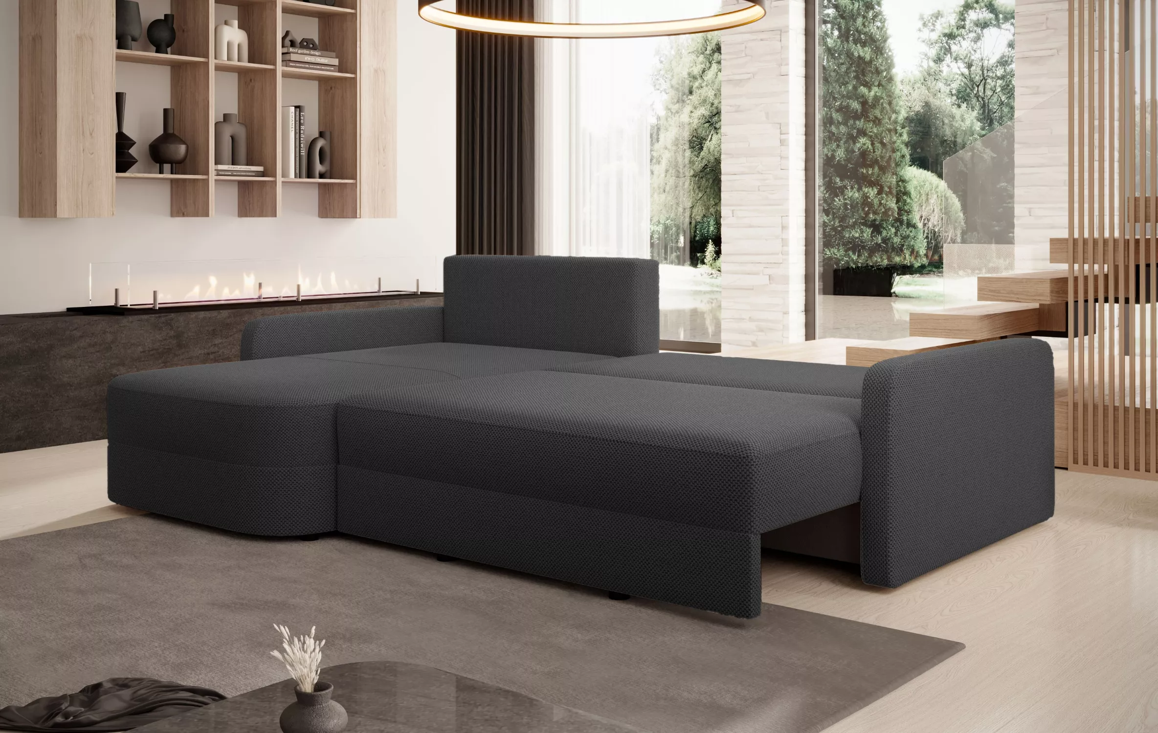 Rozkládací sedací souprava NADRAH vyniká svým osobitým charakterem a vysokou funkčností. Sedačku snadno proměníte na spací lůžko a rozměrech 135x233 cm. Další výhodou je prostorný úložný prostor, který zpříjemní její používání.