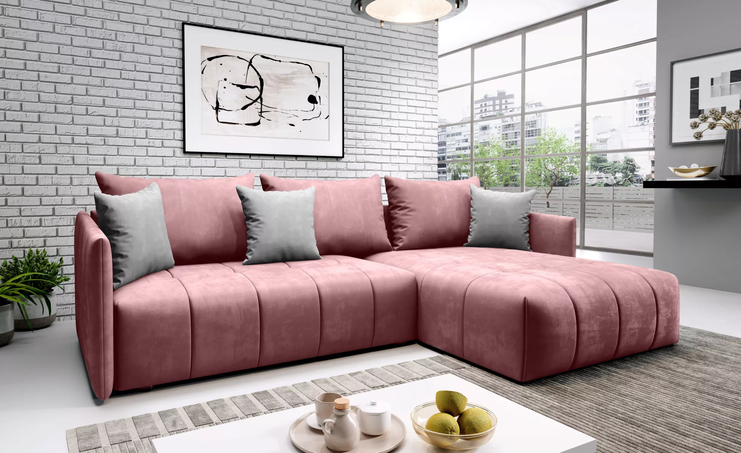 Elegantní rohová sedačka ALBERTINA - růžová / šedá