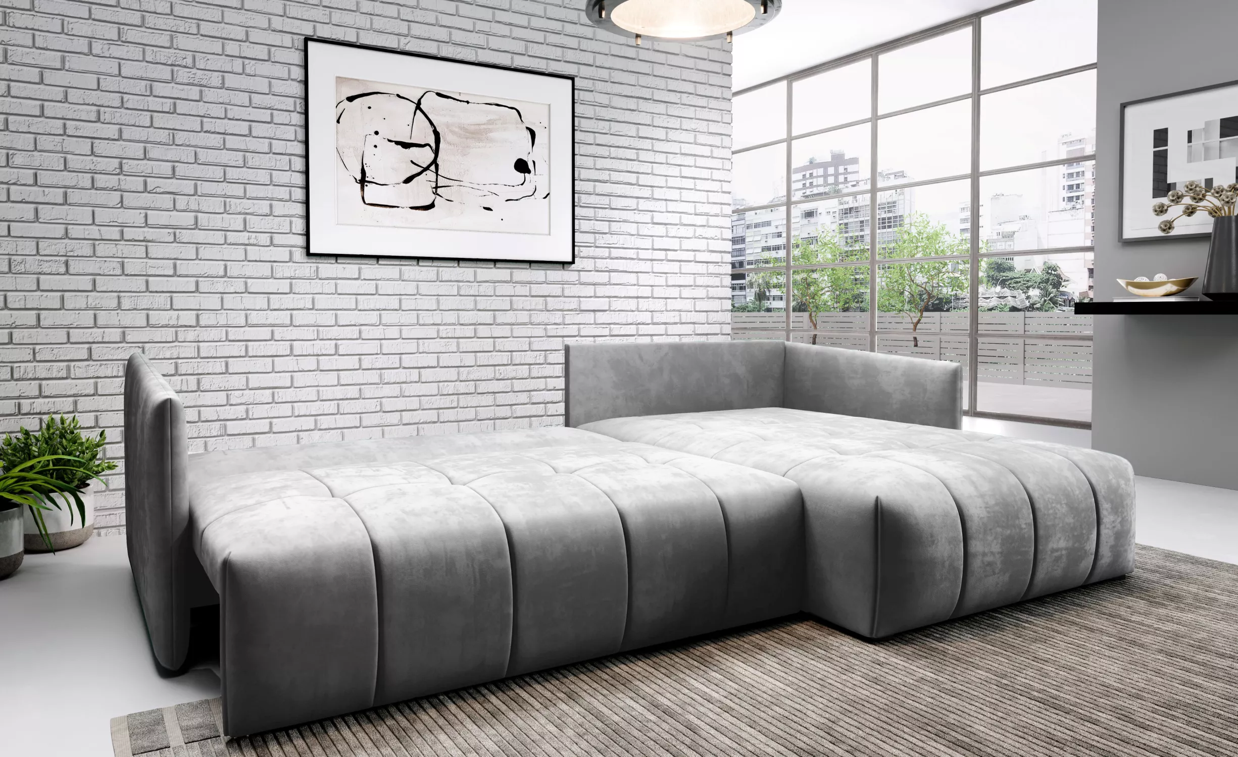 Elegantní rohová sedačka ALBERTINA vyniká osobitým charakterem s krásnou vizuální stránkou a také vysokou funkčností. Sedačku během pár okamžiků proměníte v pohodlné lůžko o spací ploše 149x230 cm. Disponuje také prostorným úložným prostorem pro uložení lůžkovin nebo sezónního oblečení.
