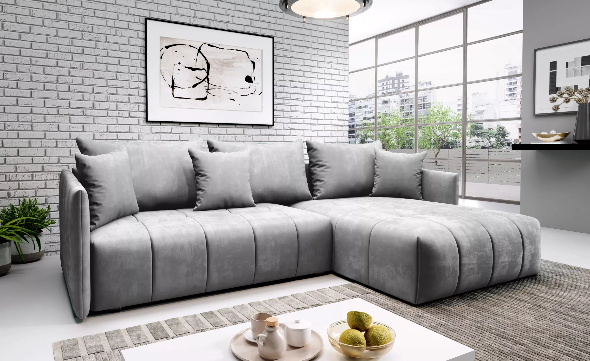 Elegantní rohová sedačka ALBERTINA - světle šedá