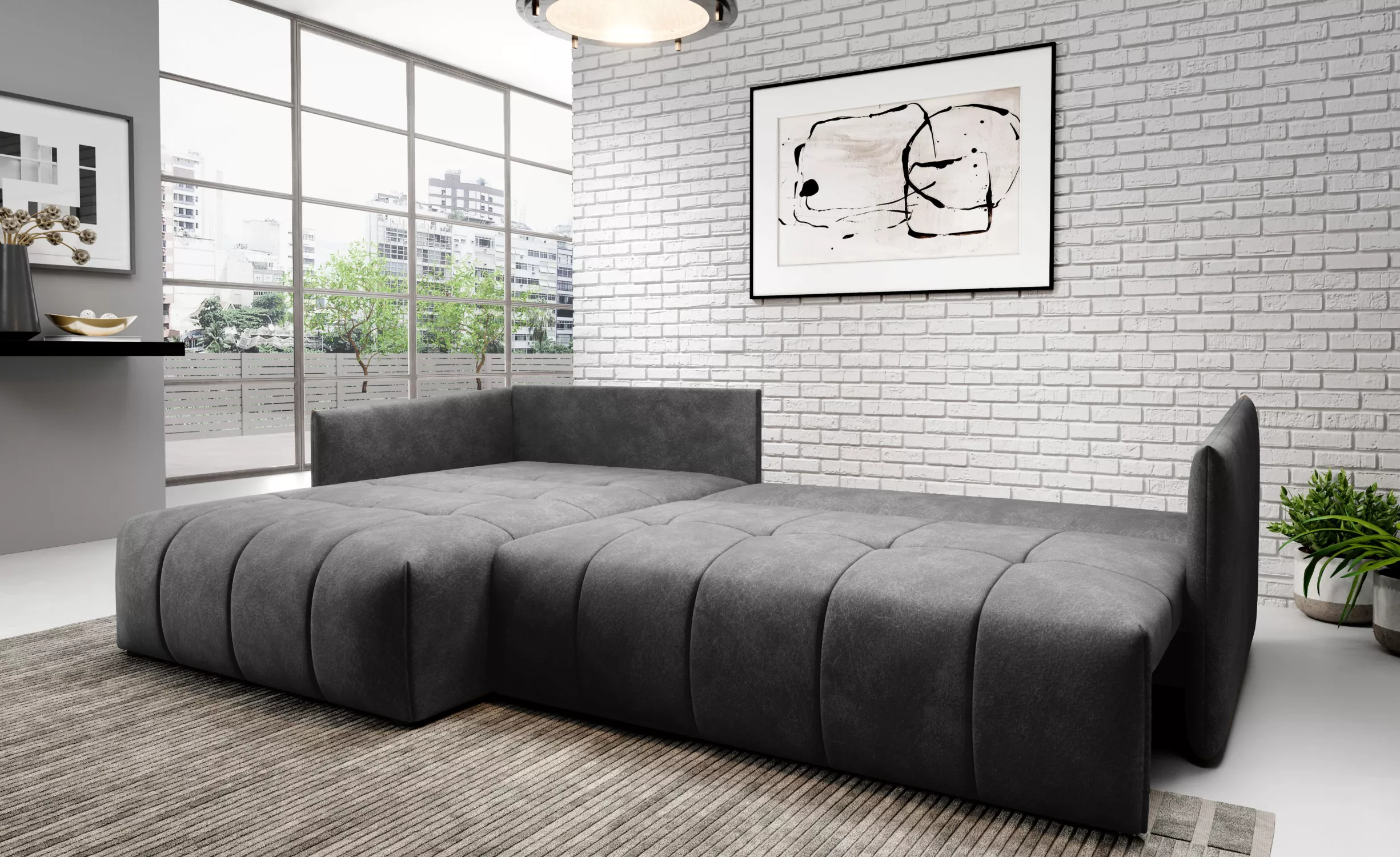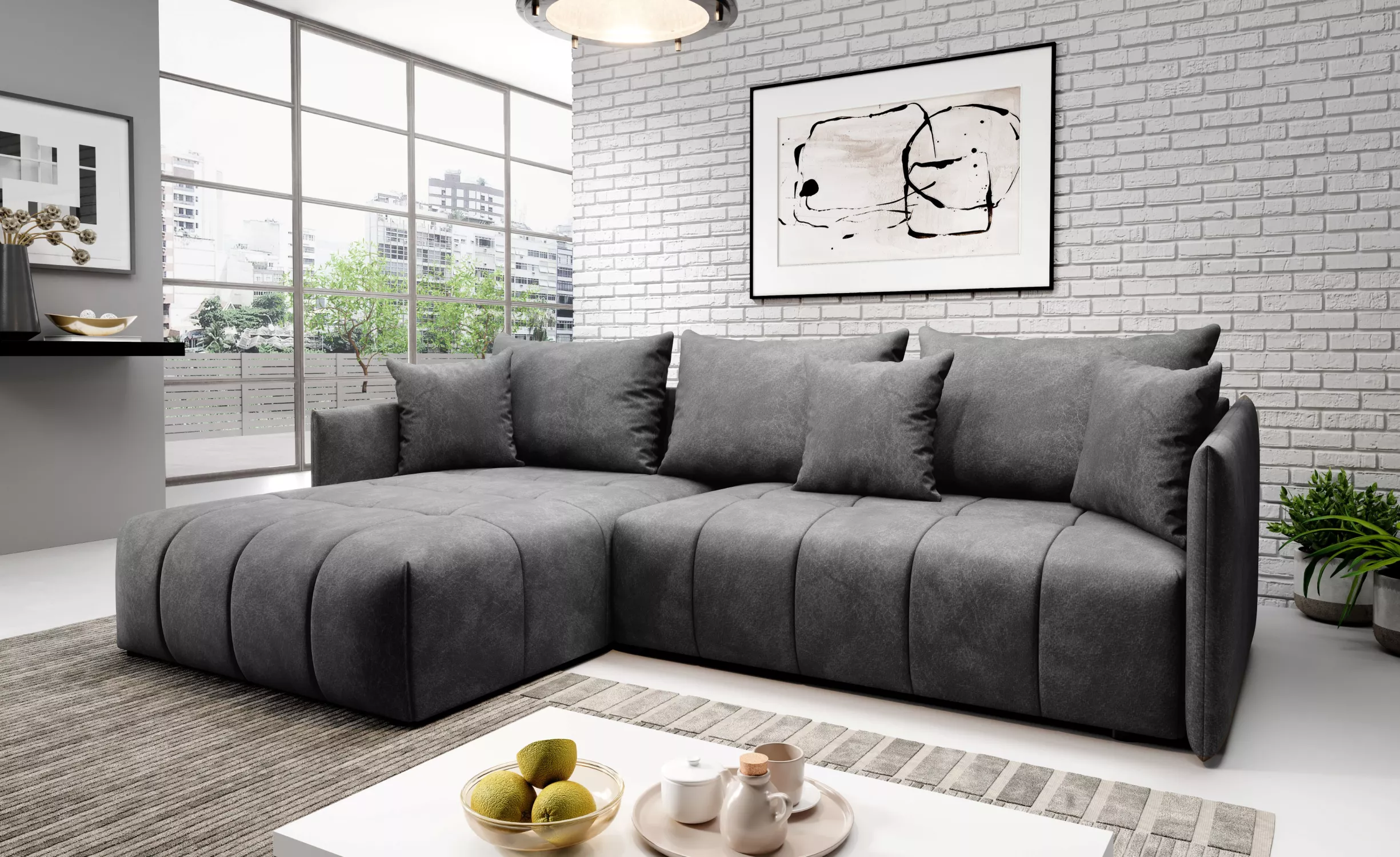 Elegantní rohová sedačka ALBERTINA - tmavě šedá
