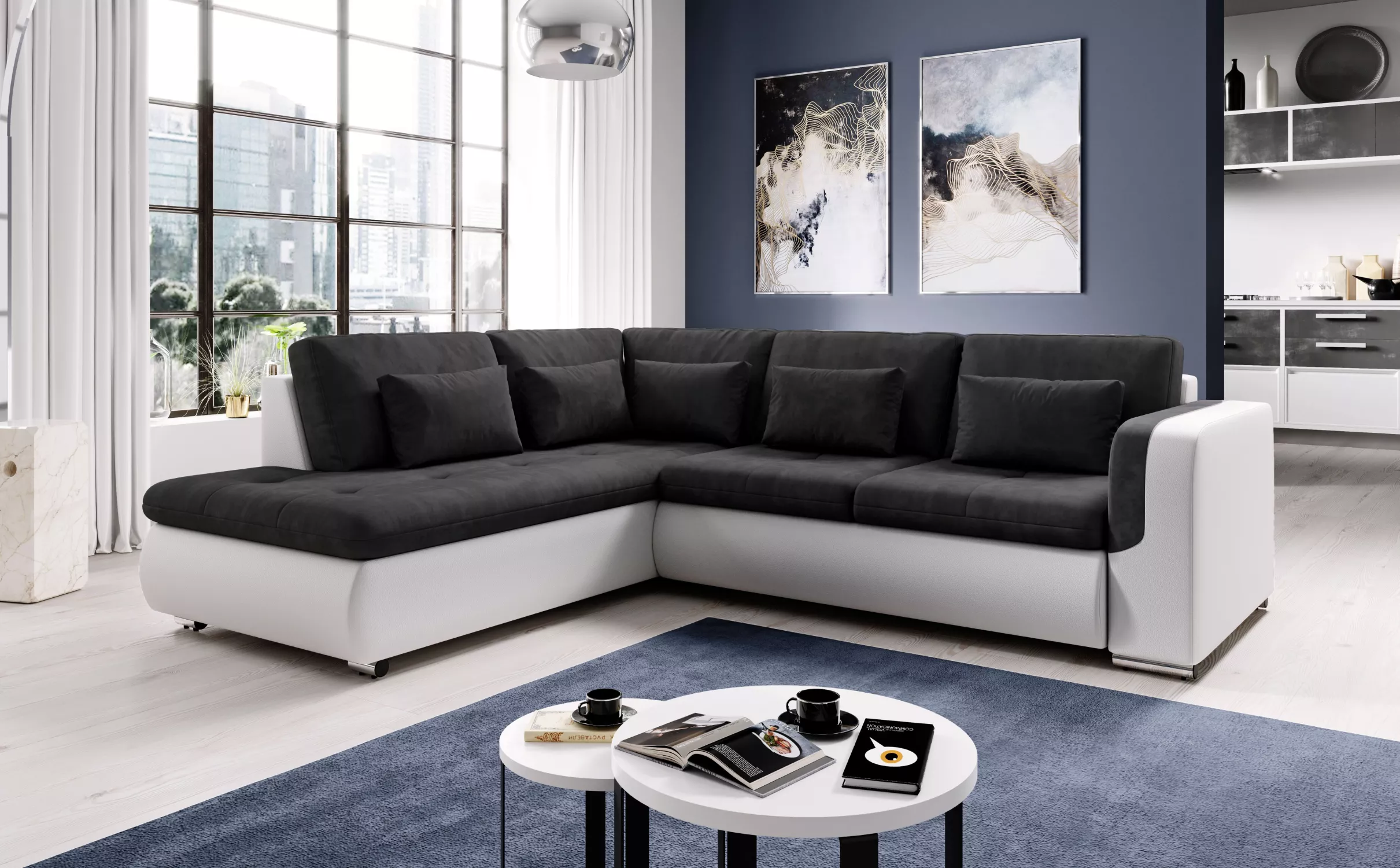 Rohová sedací souprava DAFNI - bílá / černá, levý roh