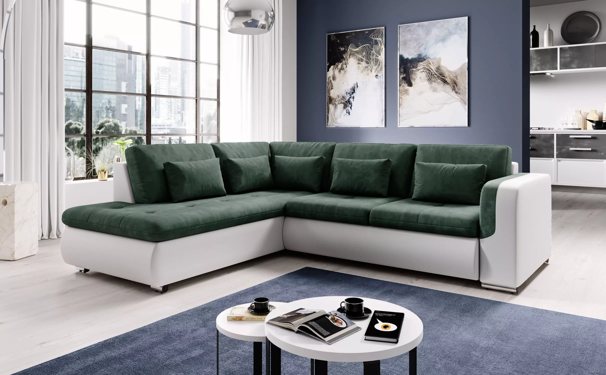 Rohová sedací souprava DAFNI - bílá / zelená, levý roh