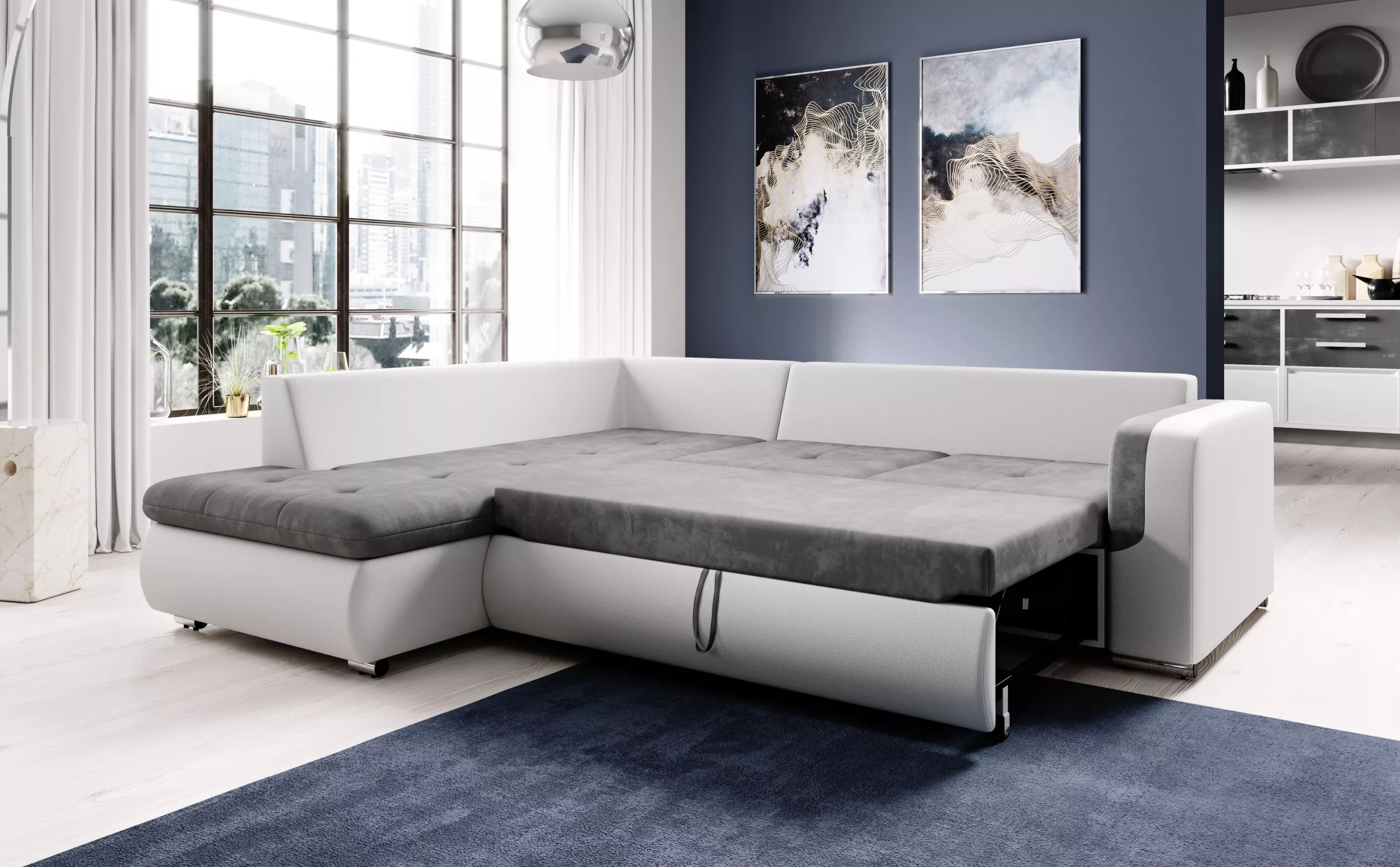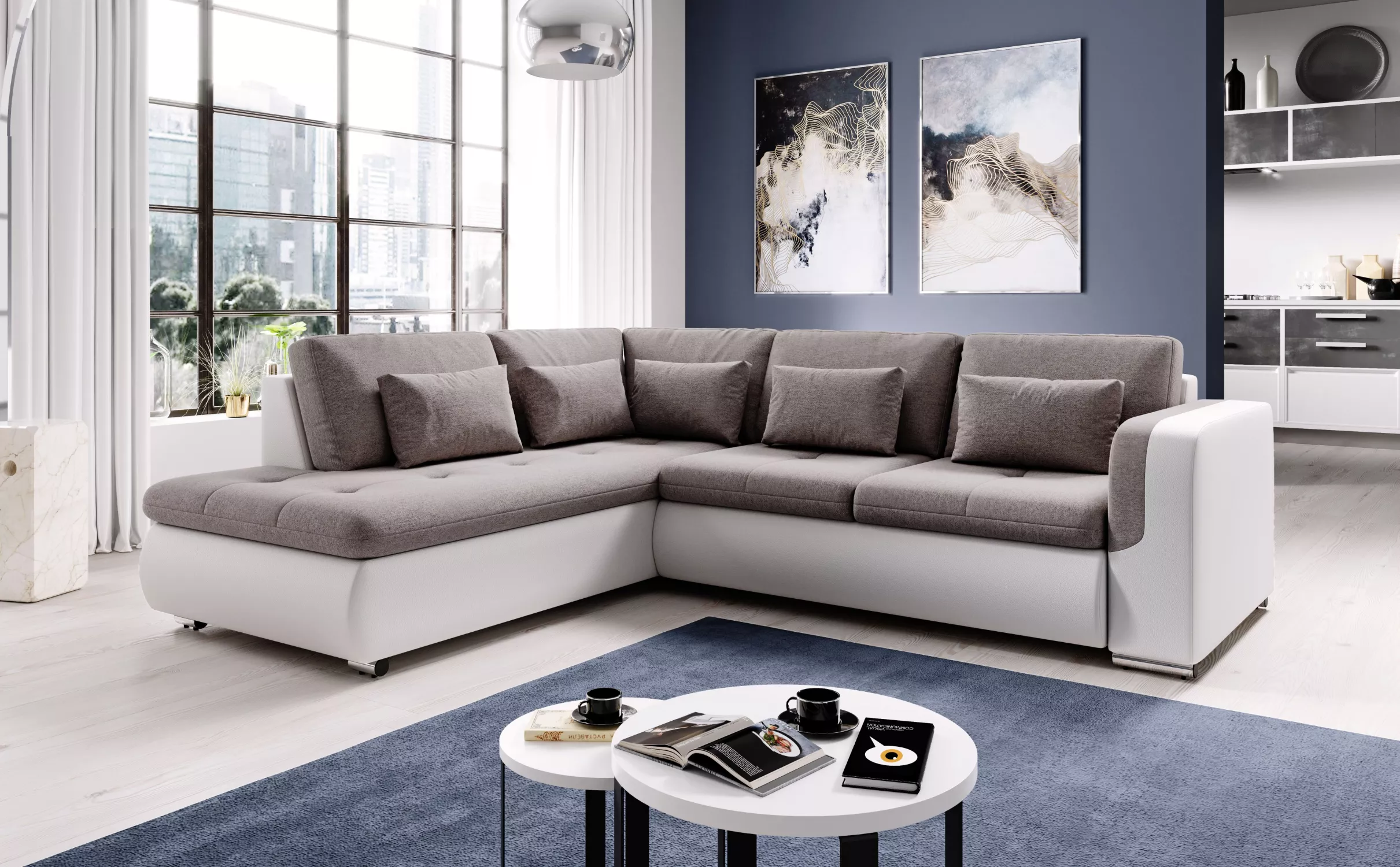 Rohová sedací souprava DAFNI je vyrobená z kvalitních materiálů, takže zůstane ve vašem obývacím pokoji sloužit po mnoho let. Výhodou je rozkládací mechanismus, díky kterému jednoduše vytvoříte místo k přespání.