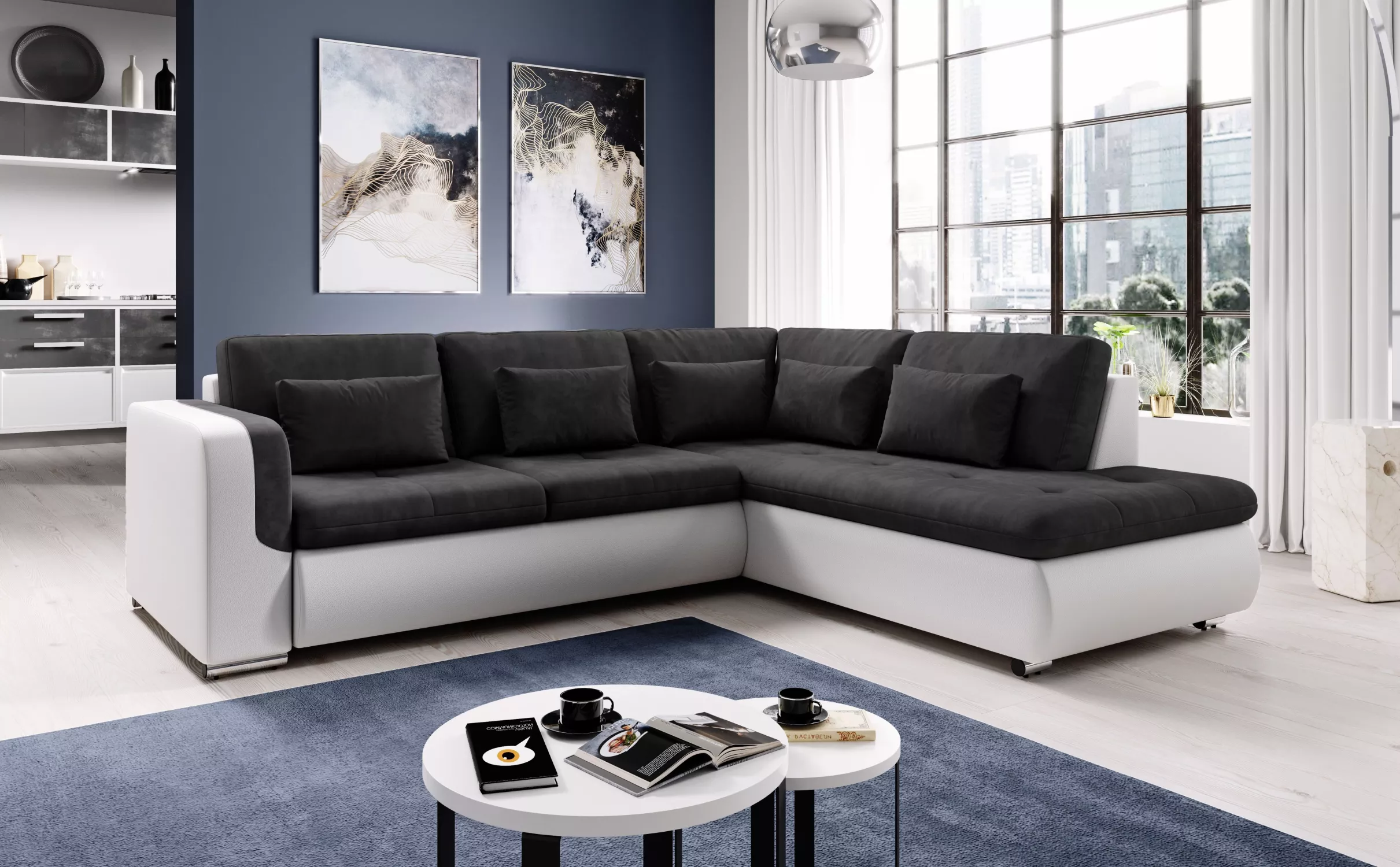 Rohová sedací souprava DAFNI - bílá / černá, pravý roh