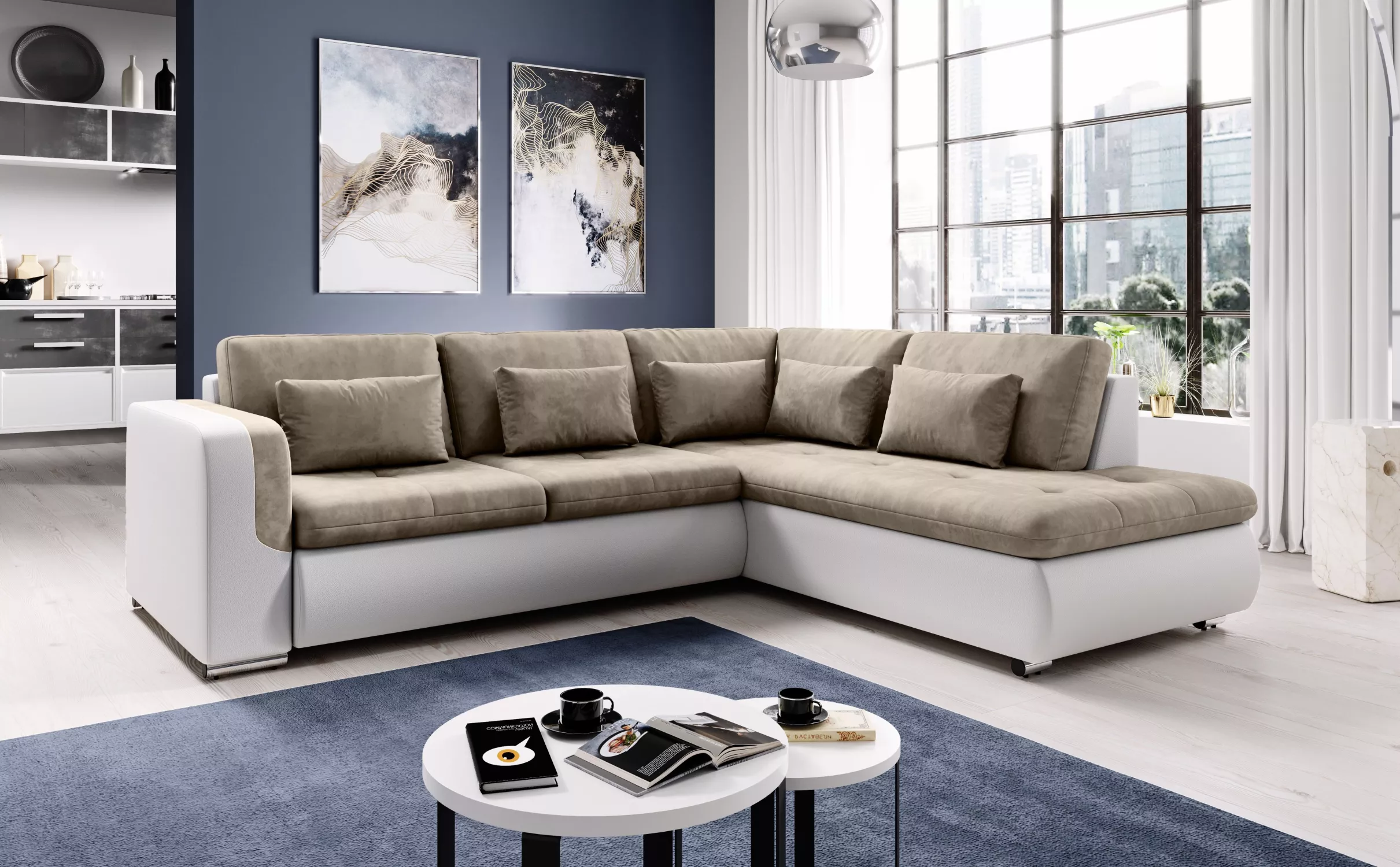 Rohová sedací souprava DAFNI - bílá / béžová, pravý roh