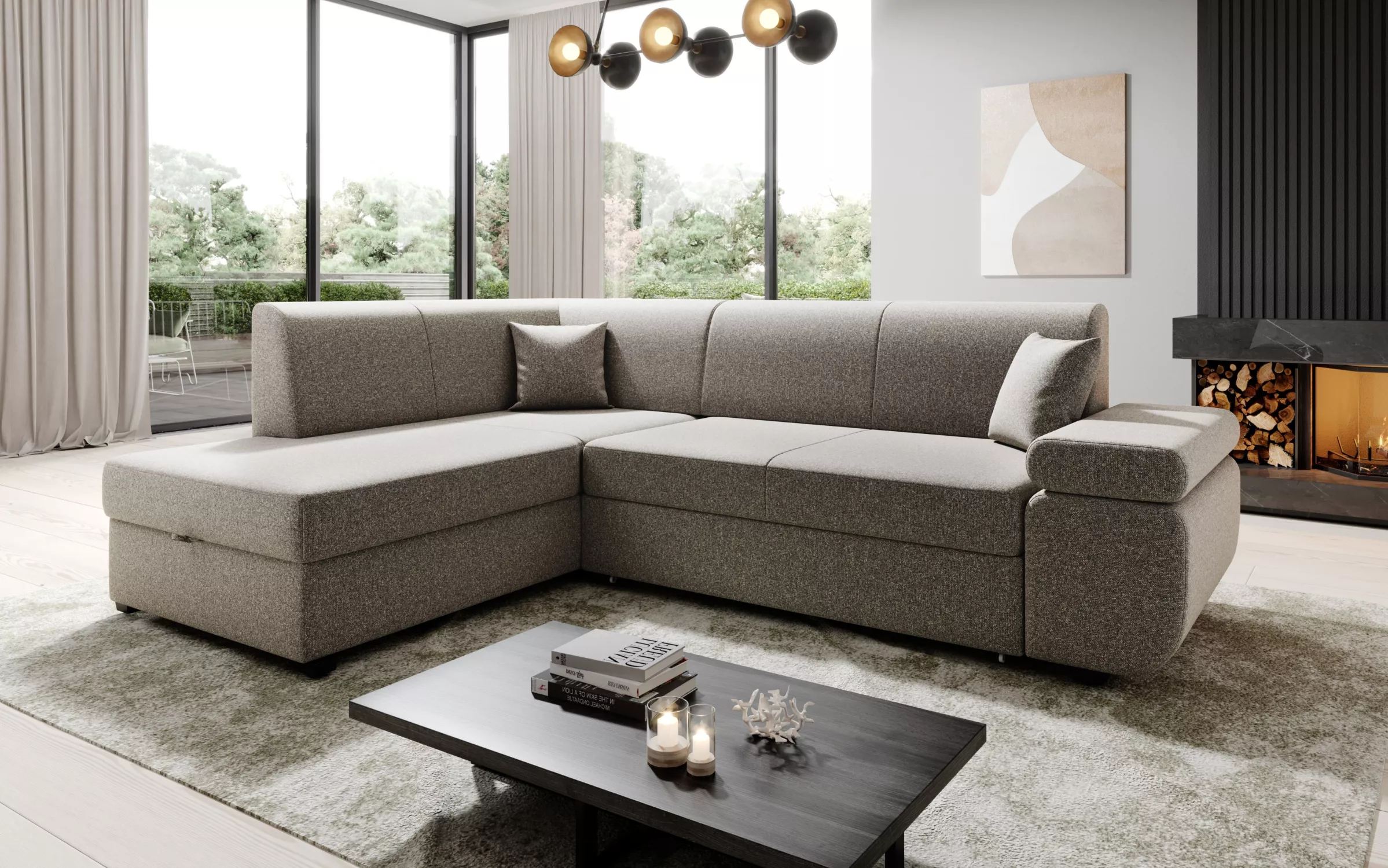 Sedací souprava s úložným prostorem FANETTE svým minimalistickým zpracováním zapadne do každého obývacího pokoje. Sedačka disponuje úložným prostorem a rozkládací funkcí. Zadní část je potažená látkou, což umožňuje její umístění kdekoliv v místnosti.