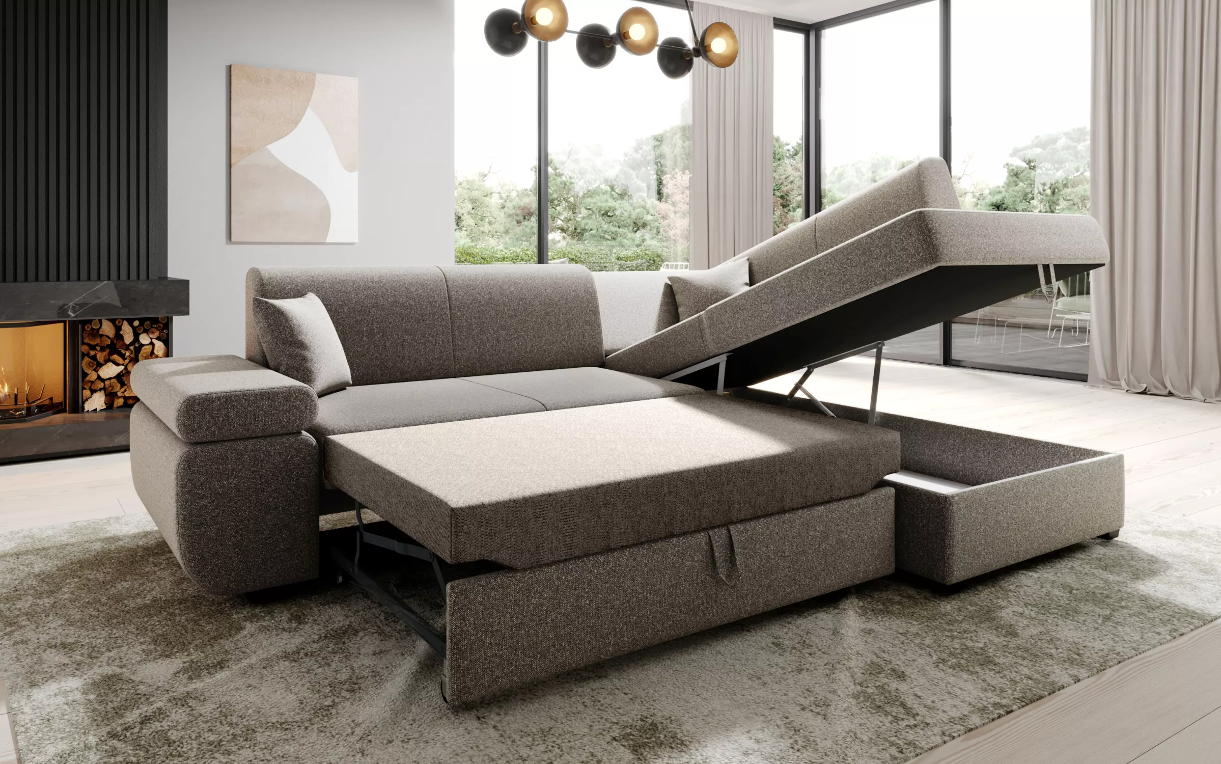 Sedací souprava s úložným prostorem FANETTE svým minimalistickým zpracováním zapadne do každého obývacího pokoje. Sedačka disponuje úložným prostorem a rozkládací funkcí. Zadní část je potažená látkou, což umožňuje její umístění kdekoliv v místnosti.