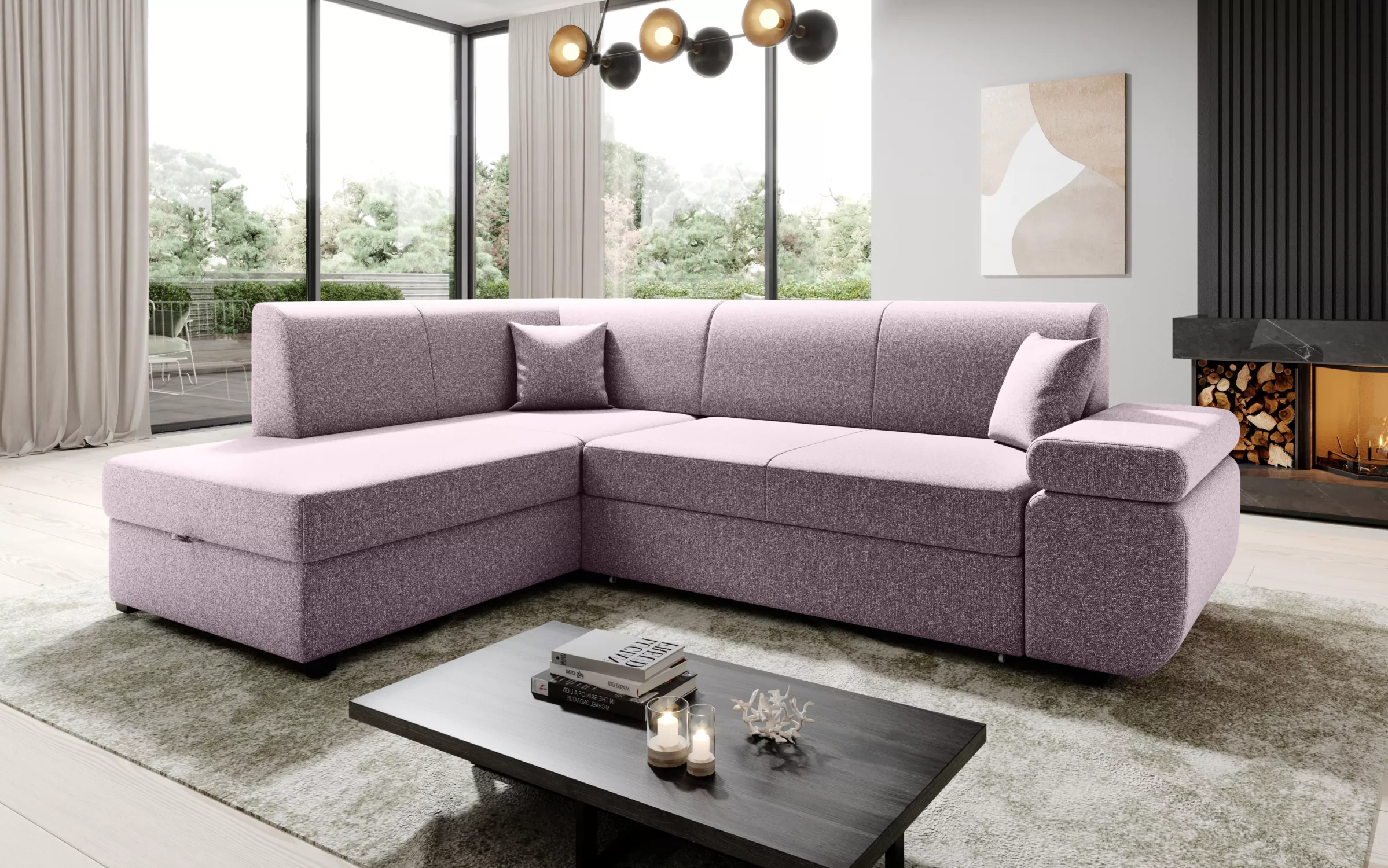 Sedací souprava s úložným prostorem FANETTE - světle fialová, levý roh