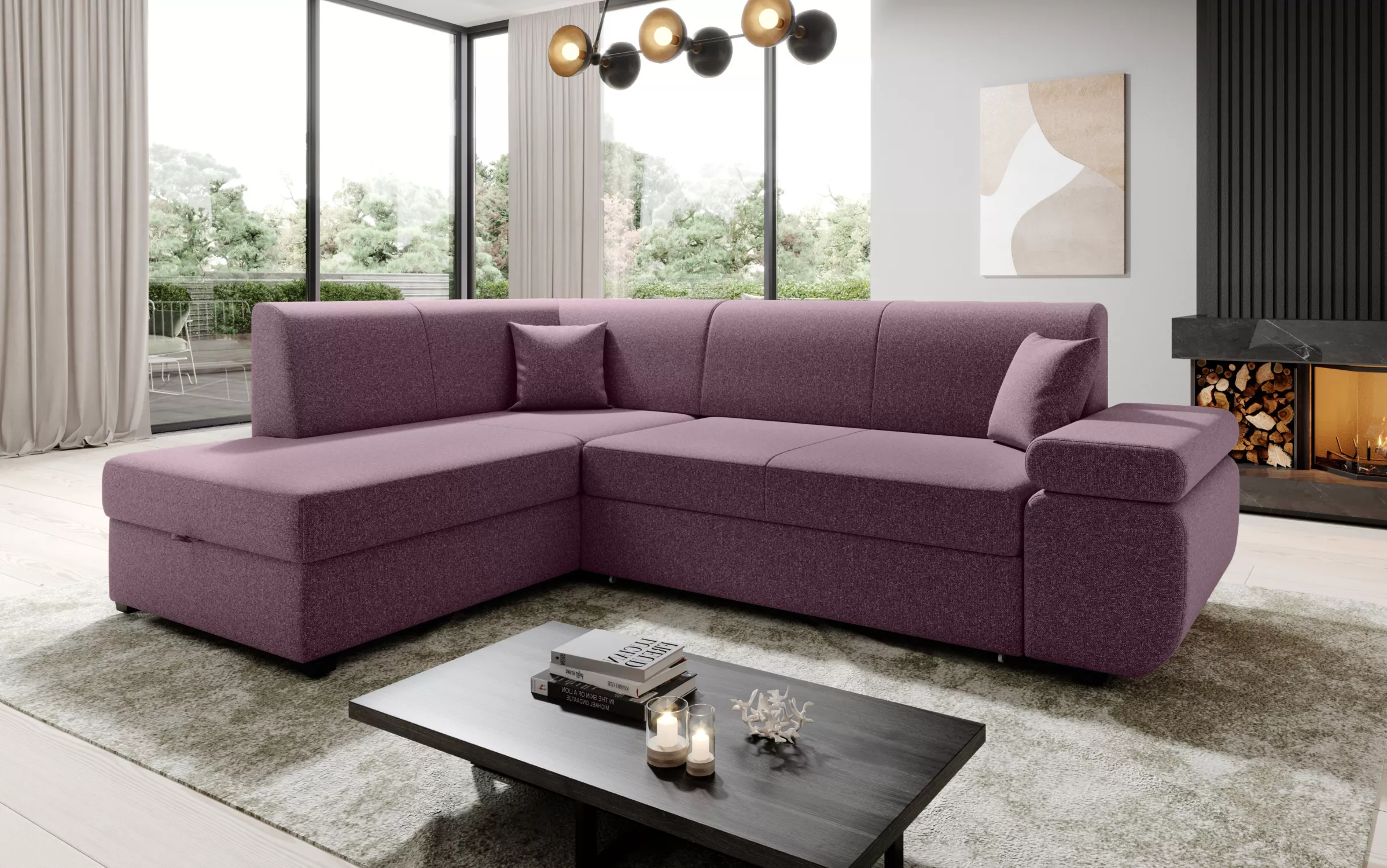 Sedací souprava s úložným prostorem FANETTE - fialová, levý roh