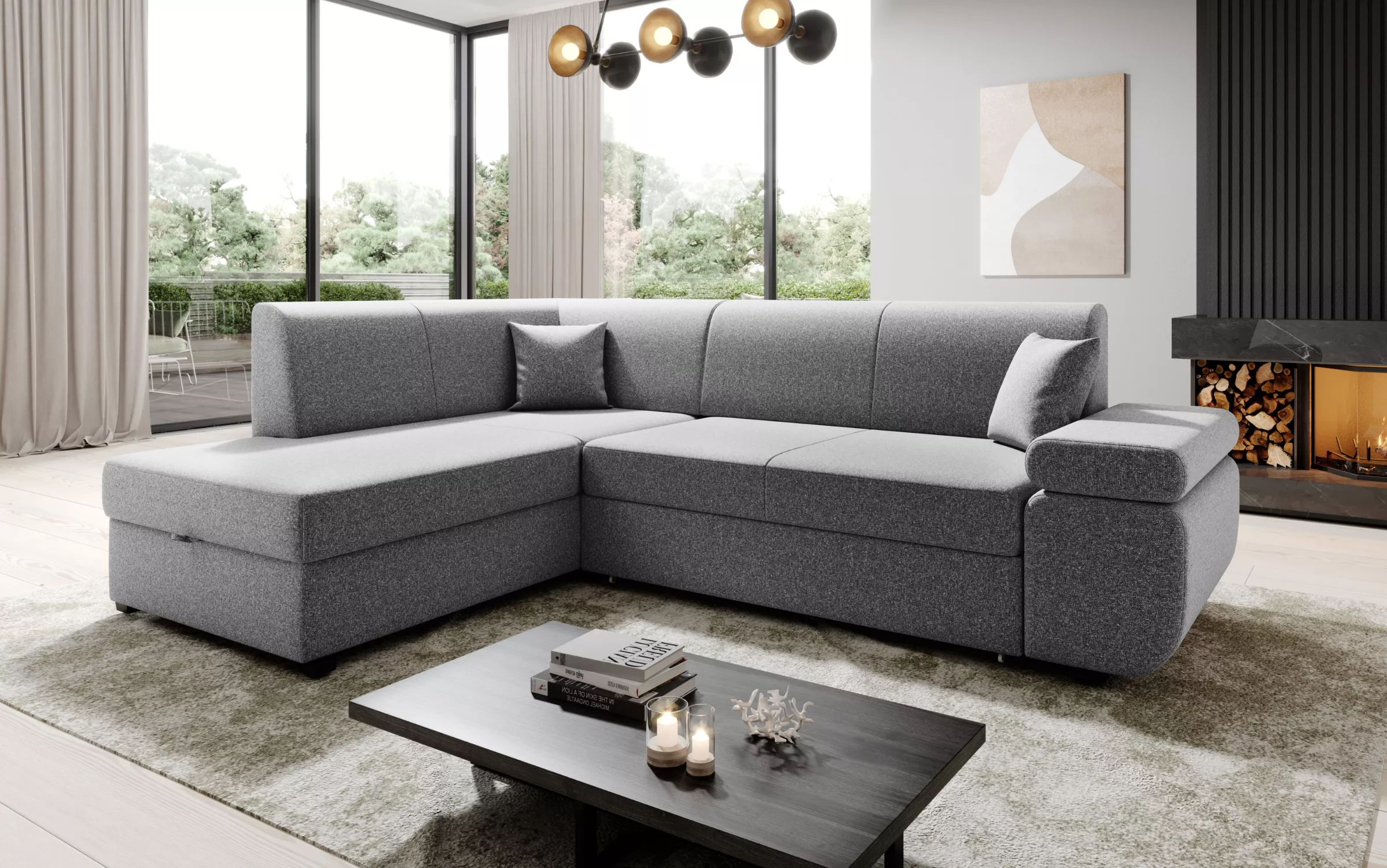 Sedací souprava s úložným prostorem FANETTE - šedá, levý roh