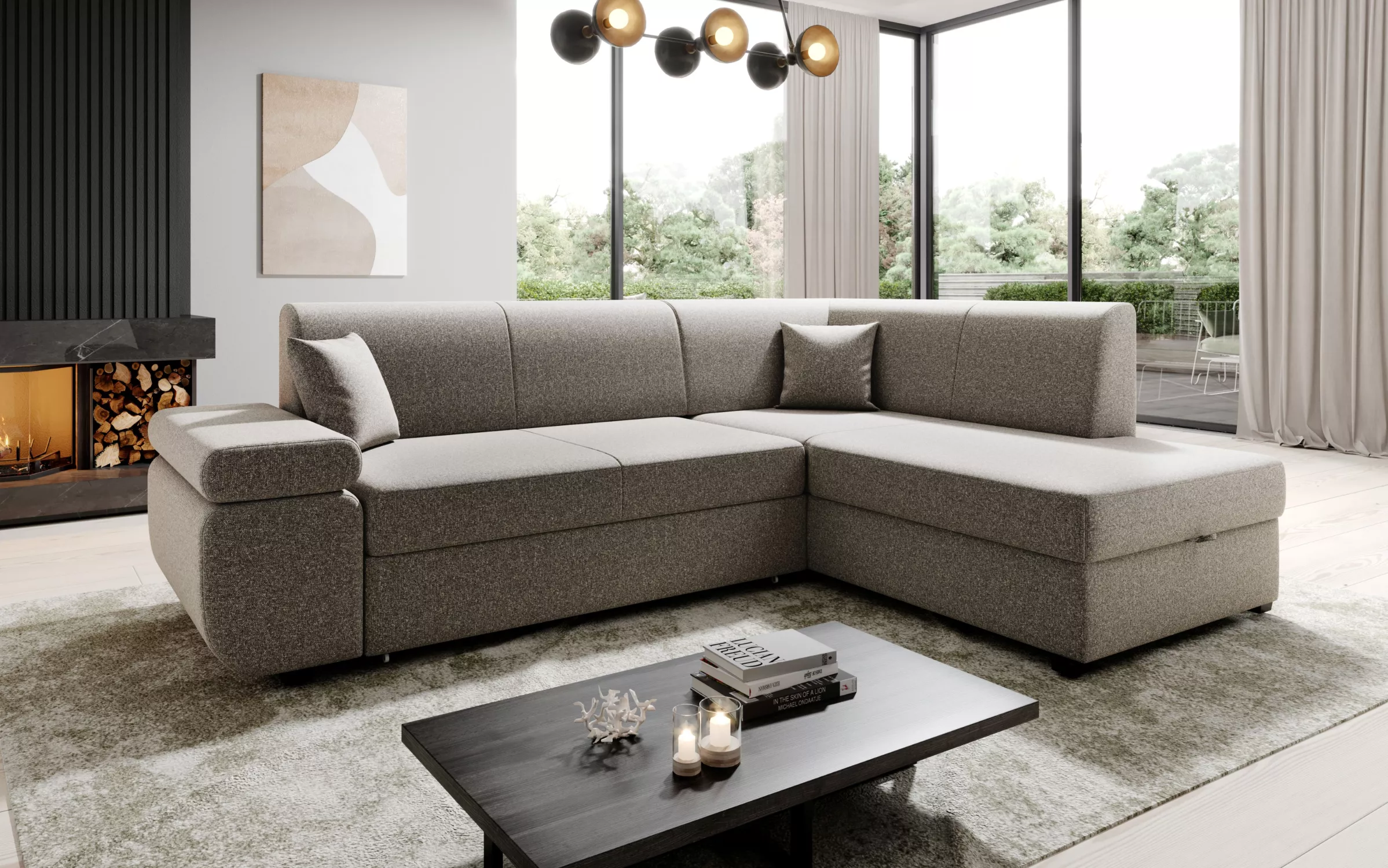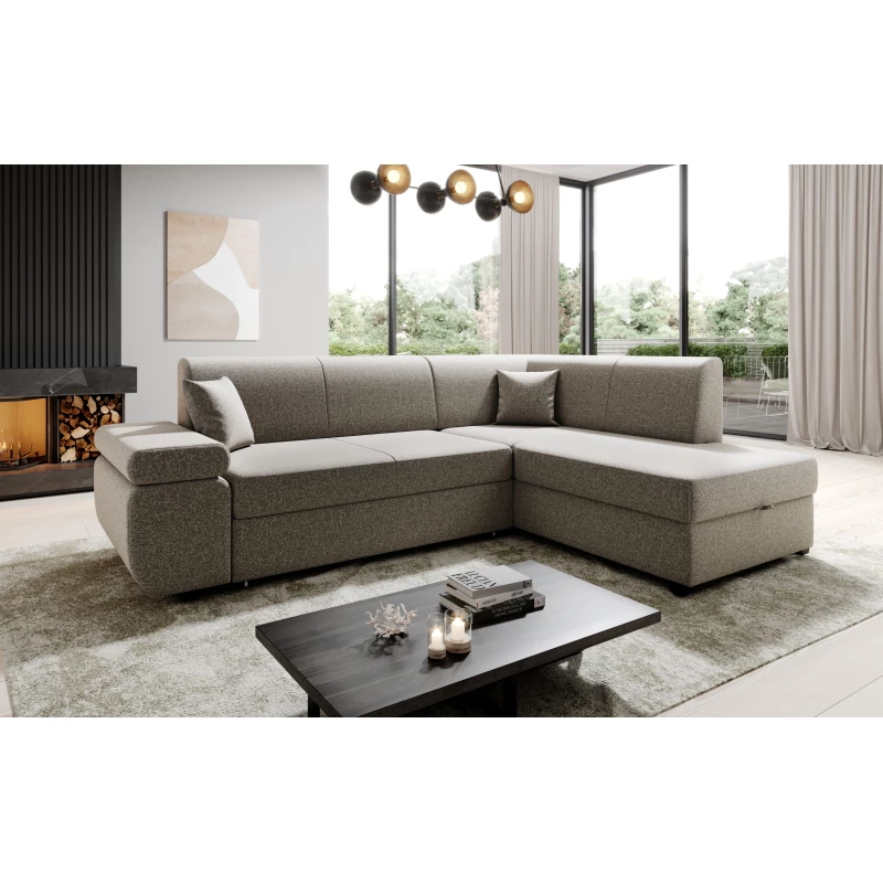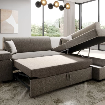 Sedací souprava s úložným prostorem FANETTE - světle hnědá, pravý roh