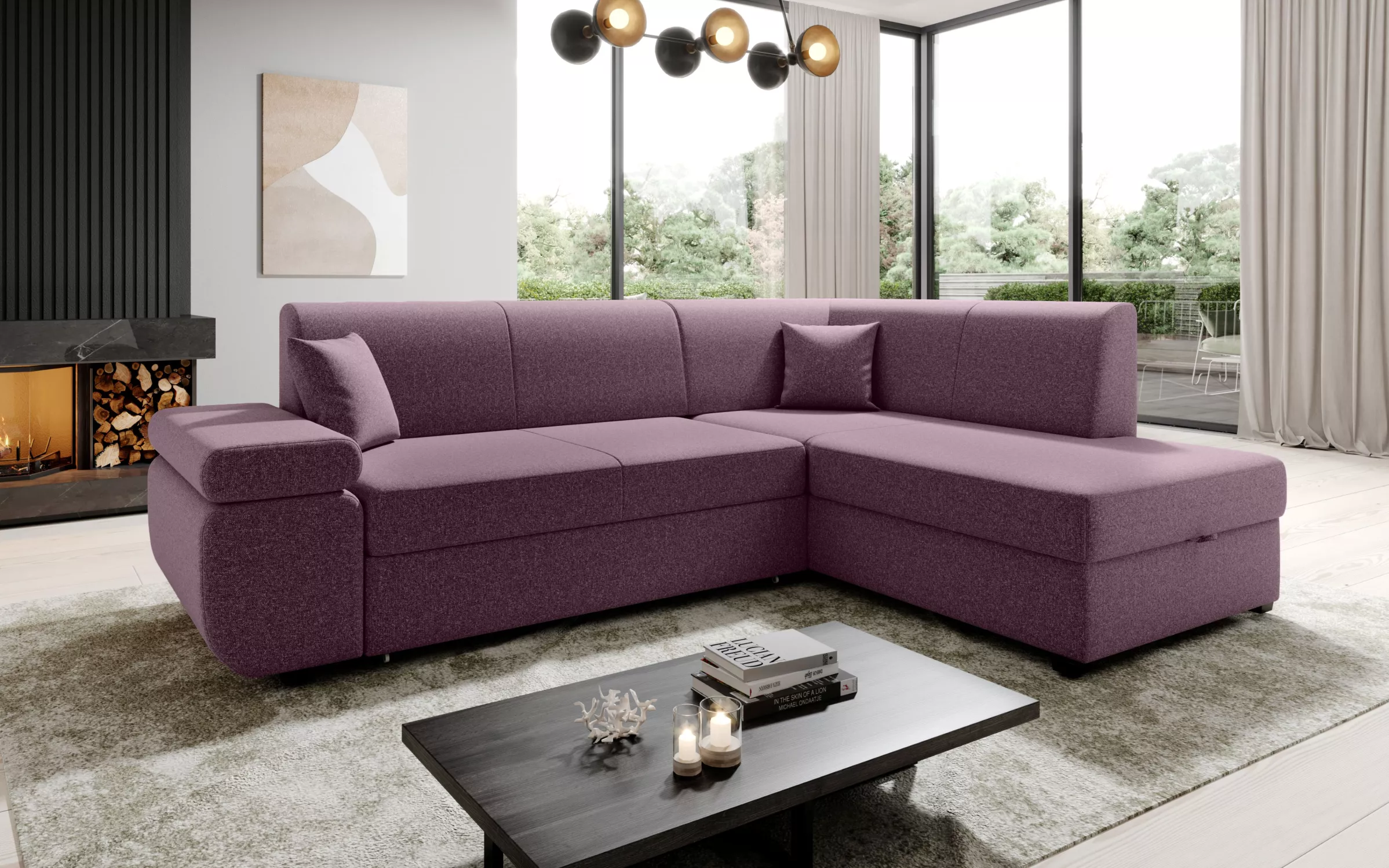 Sedací souprava s úložným prostorem FANETTE - fialová, pravý roh
