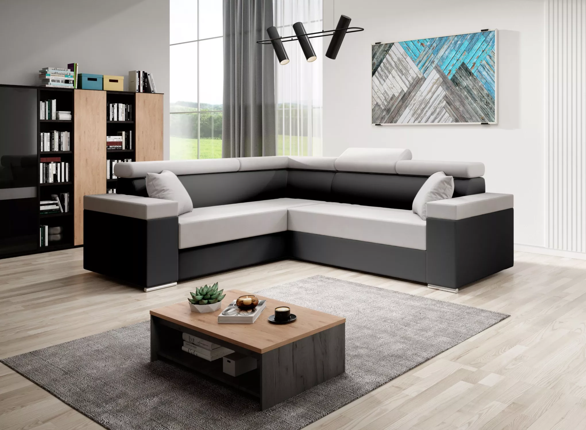 Stylová rozkládací sedačka LEXIA - černá / béžová, levý roh
