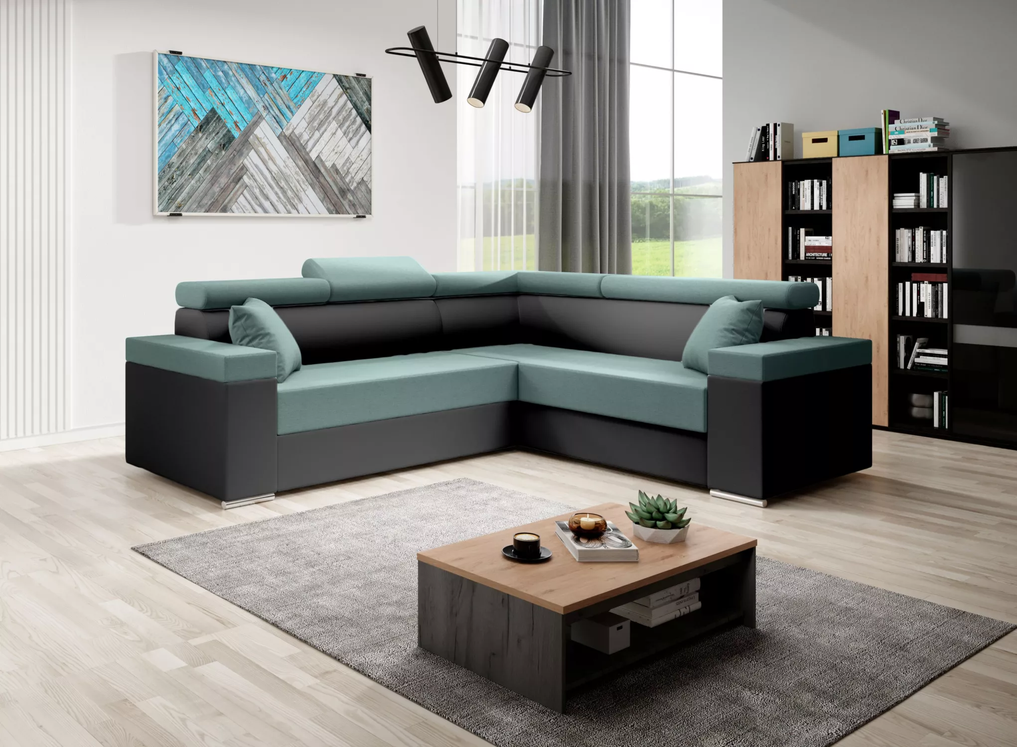 Stylová rozkládací sedačka LEXIA - černá / tyrkysová, pravý roh