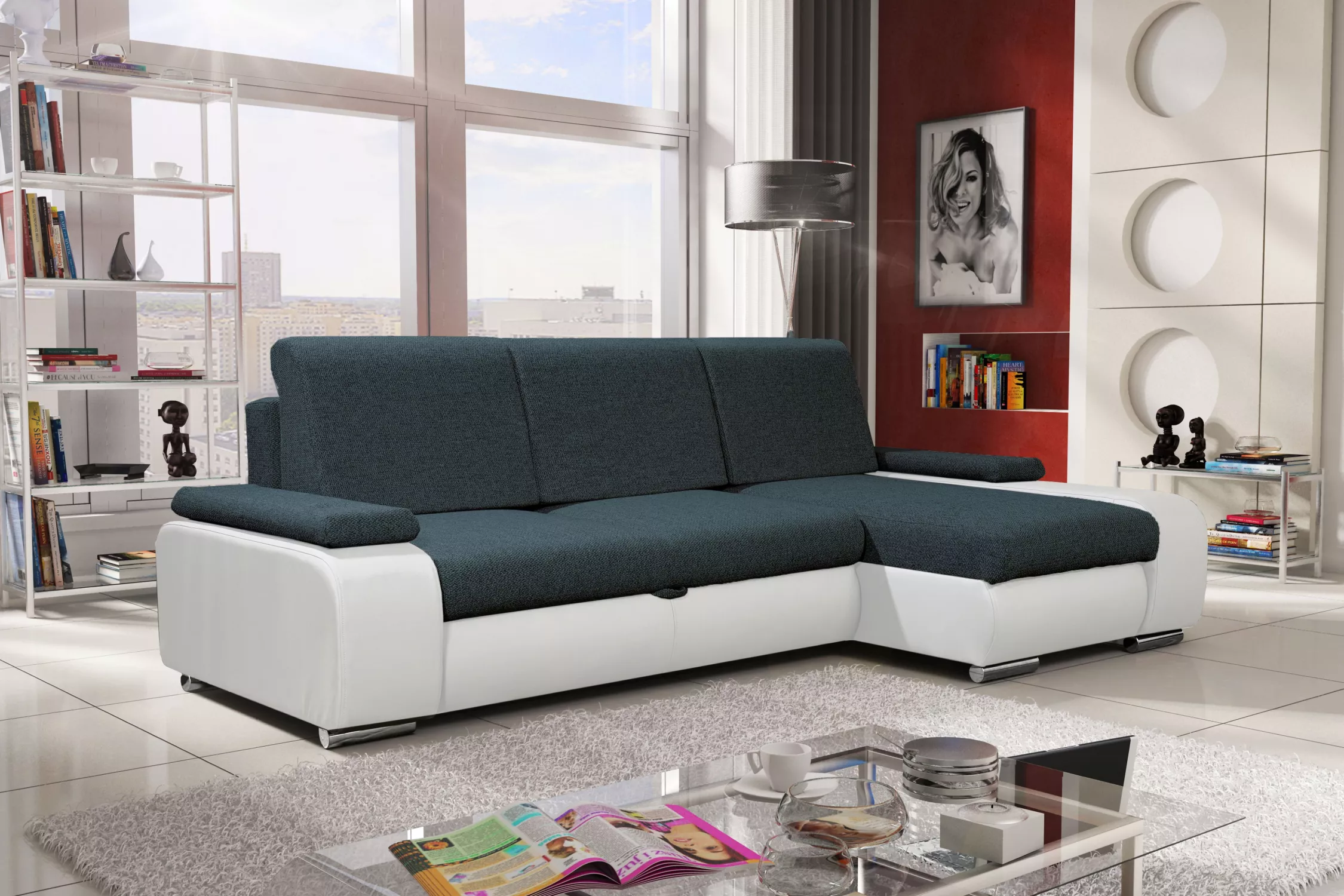 Sedací souprava s úložným prostorem XAVERA - bílá / modrá