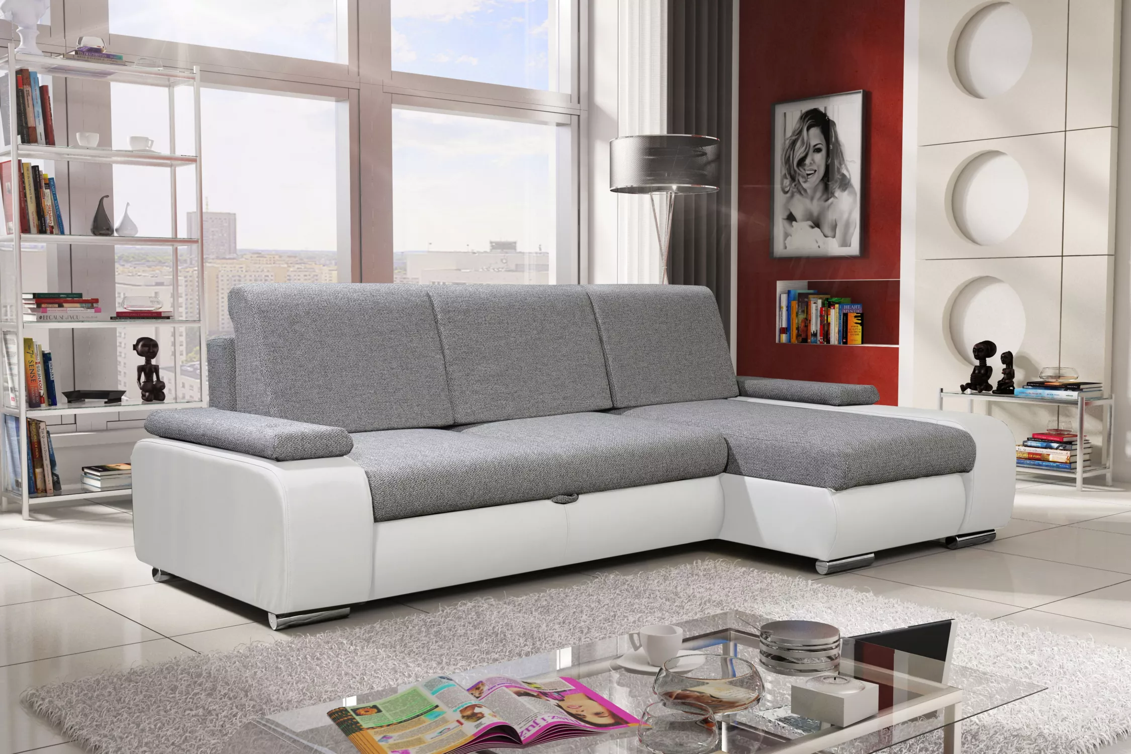 Sedací souprava s úložným prostorem XAVERA - bílá / světle šedá