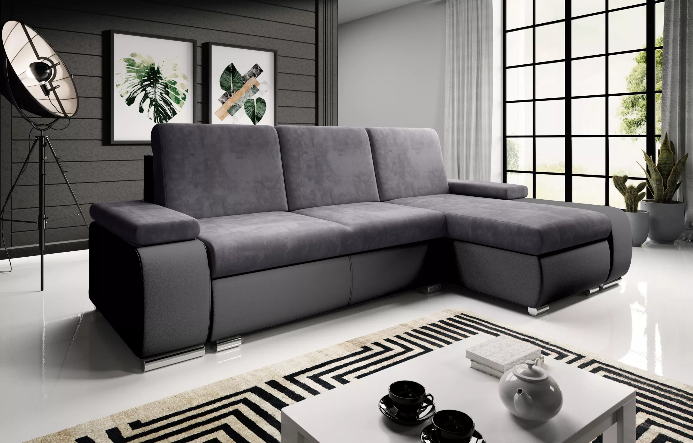 Sedací souprava s úložným prostorem XAVERA - černá / popelavá
