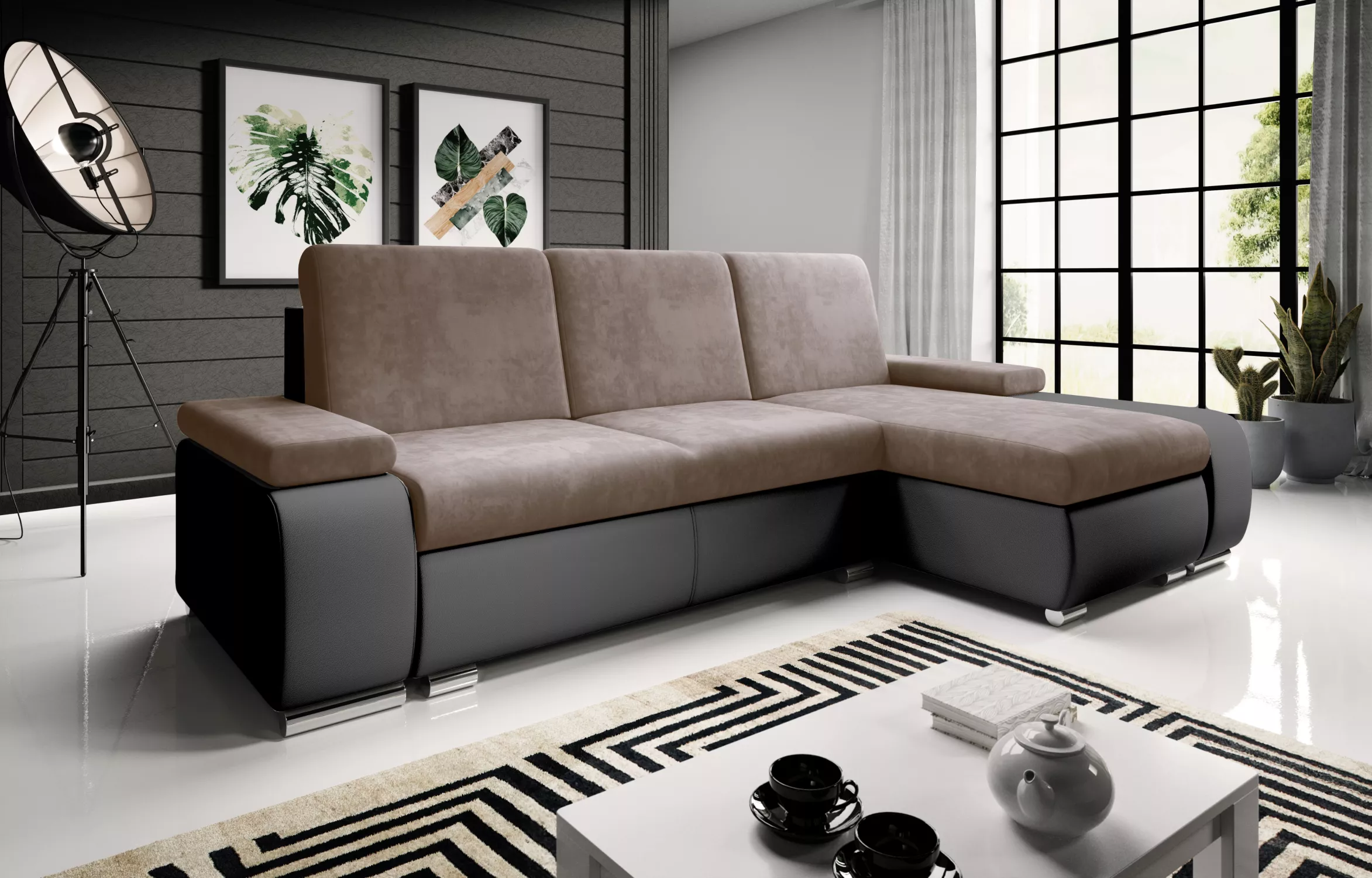 Sedací souprava s úložným prostorem XAVERA - černá / cappuccino