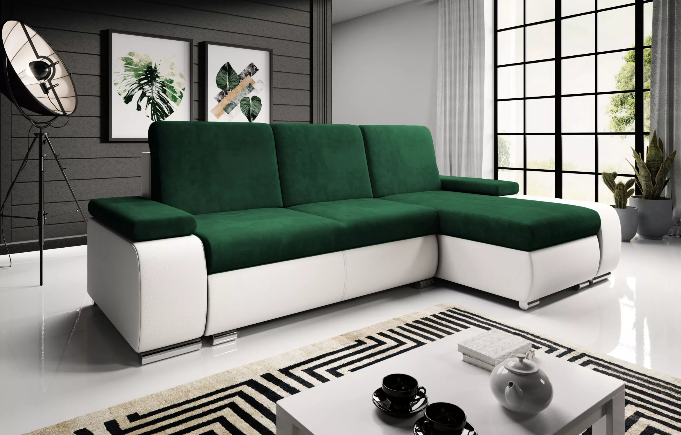 Sedací souprava s úložným prostorem XAVERA - bílá / zelená