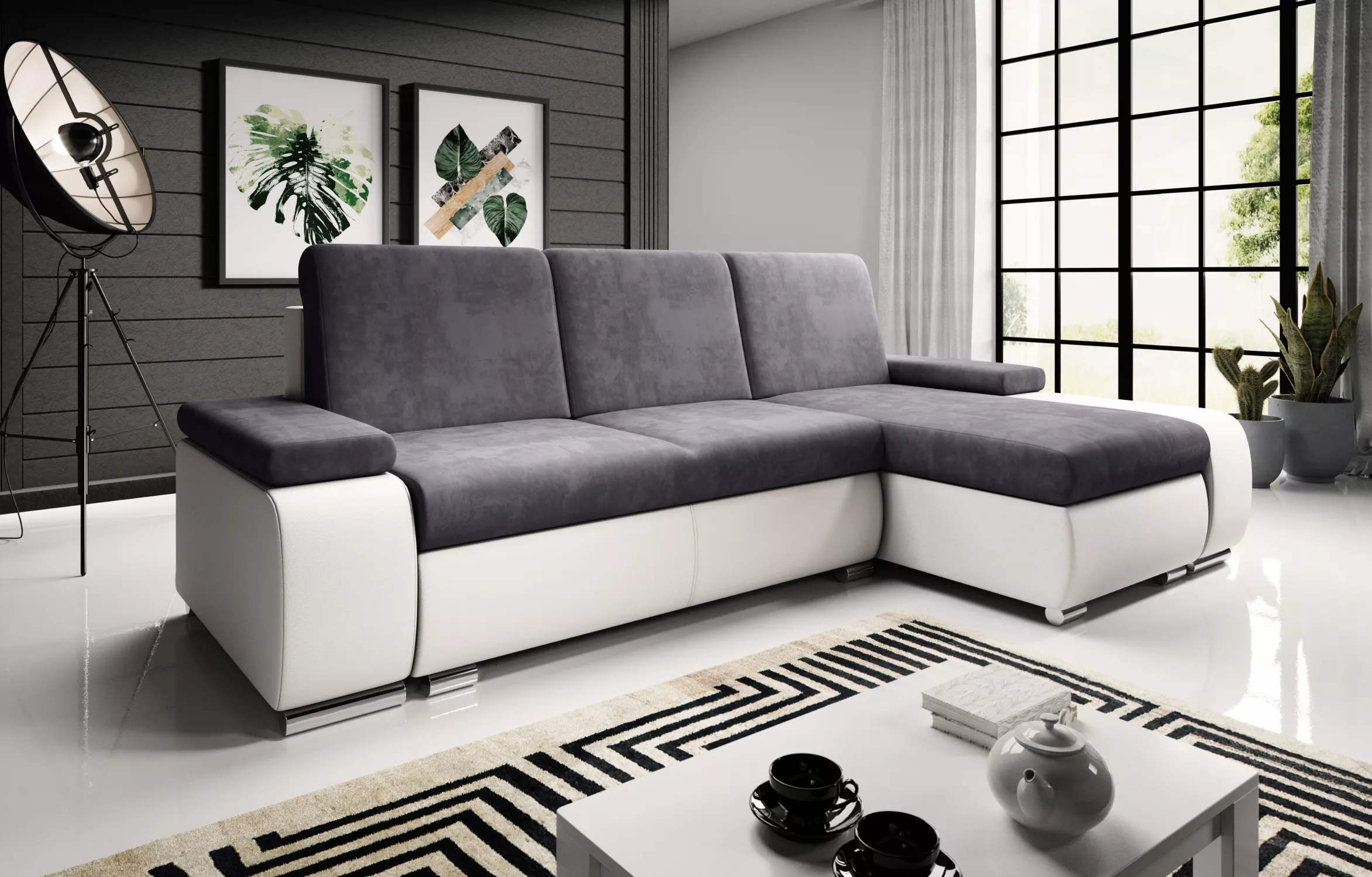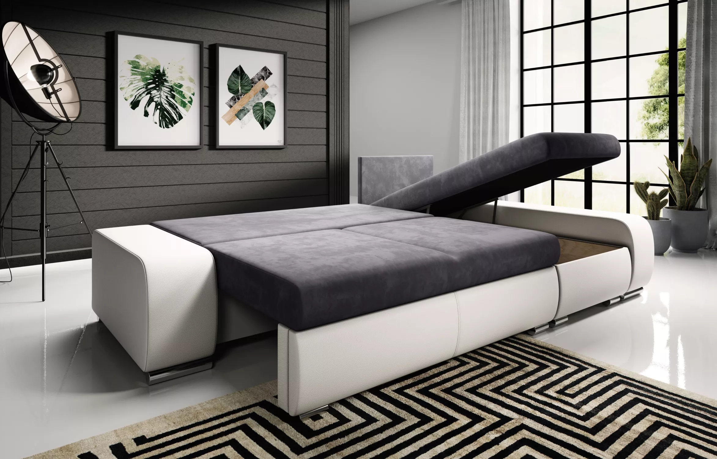 Sedací souprava s úložným prostorem XAVERA - bílá / popelavá