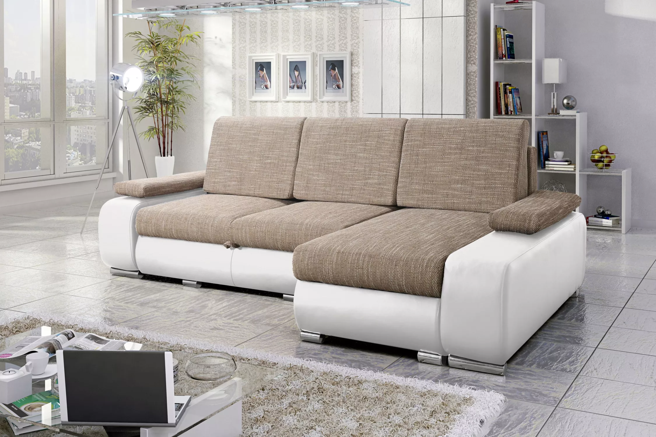 Sedací souprava s úložným prostorem XAVERA - světle hnědá / bílá