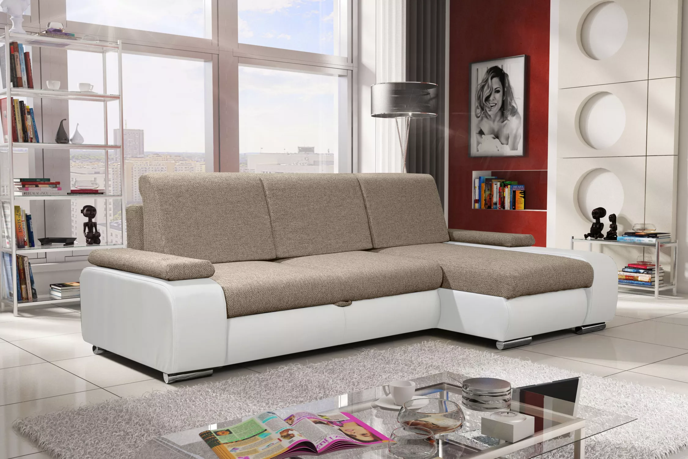 Sedací souprava s úložným prostorem XAVERA - béžová / bílá